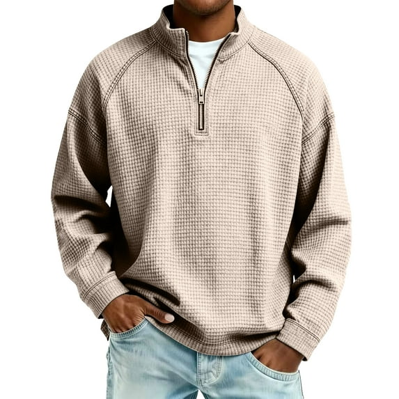 Half Zip Pullover Men Men #39 s Waffle Long Sleeve Shirts Button Tops