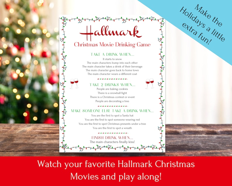 Hallmark Movie Christmas Drinking Game Holiday Game Instant Download