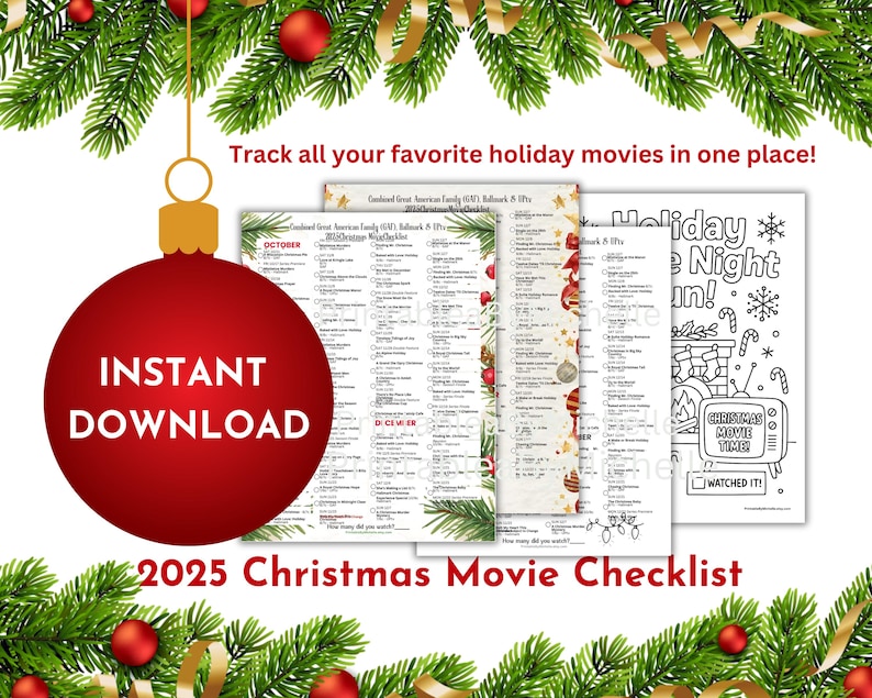 2025 Christmas Movie Marathon Checklist Printable Hallmark Great