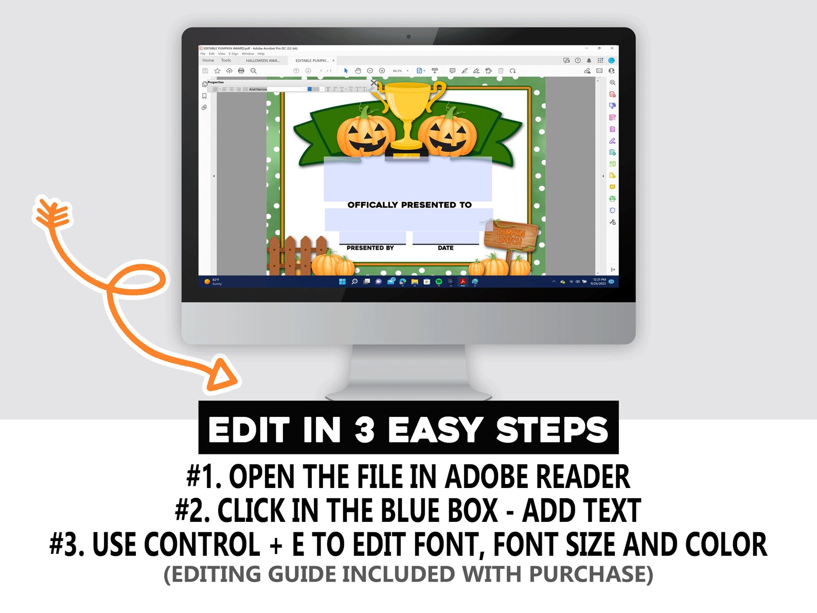 Printable Halloween Pumpkin Carving Award Certificate Editable