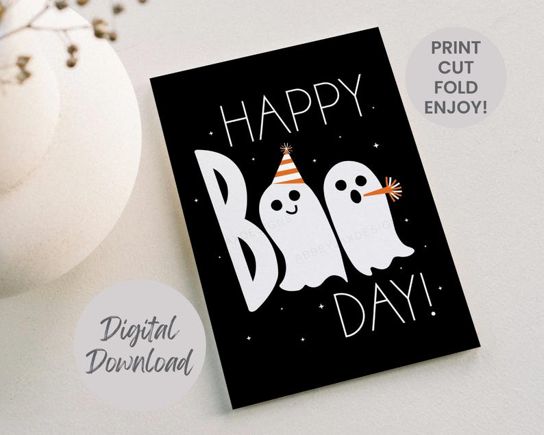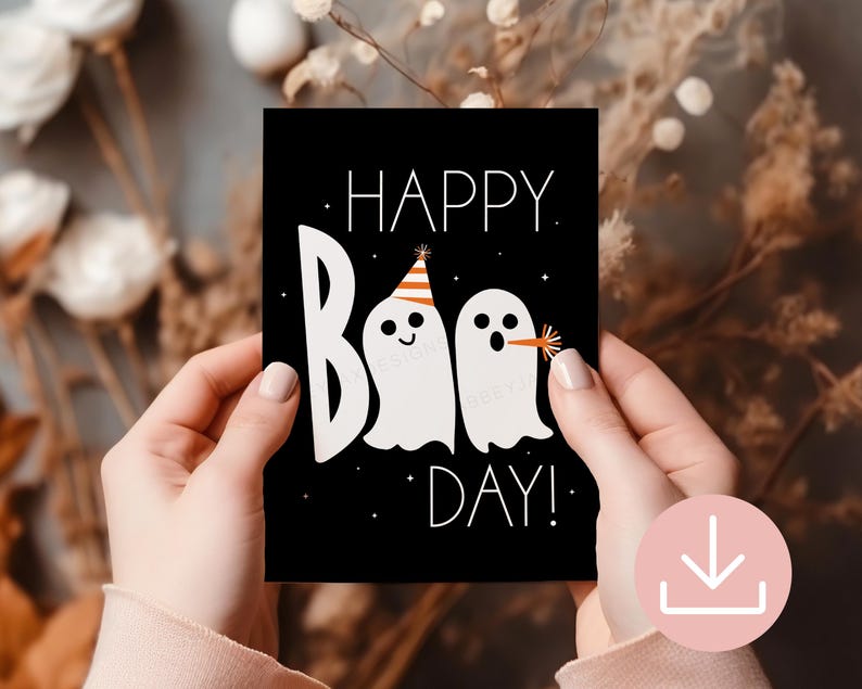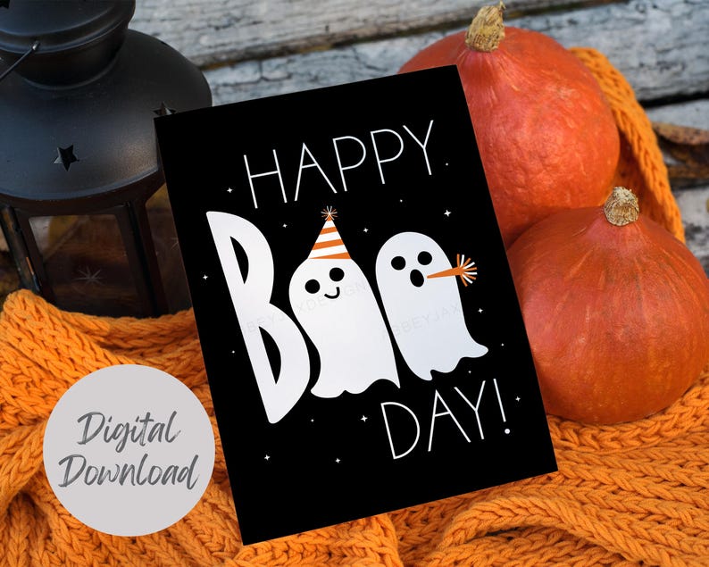 Halloween Birthday Card Printable October Birthday Gift Happy Boo Day
