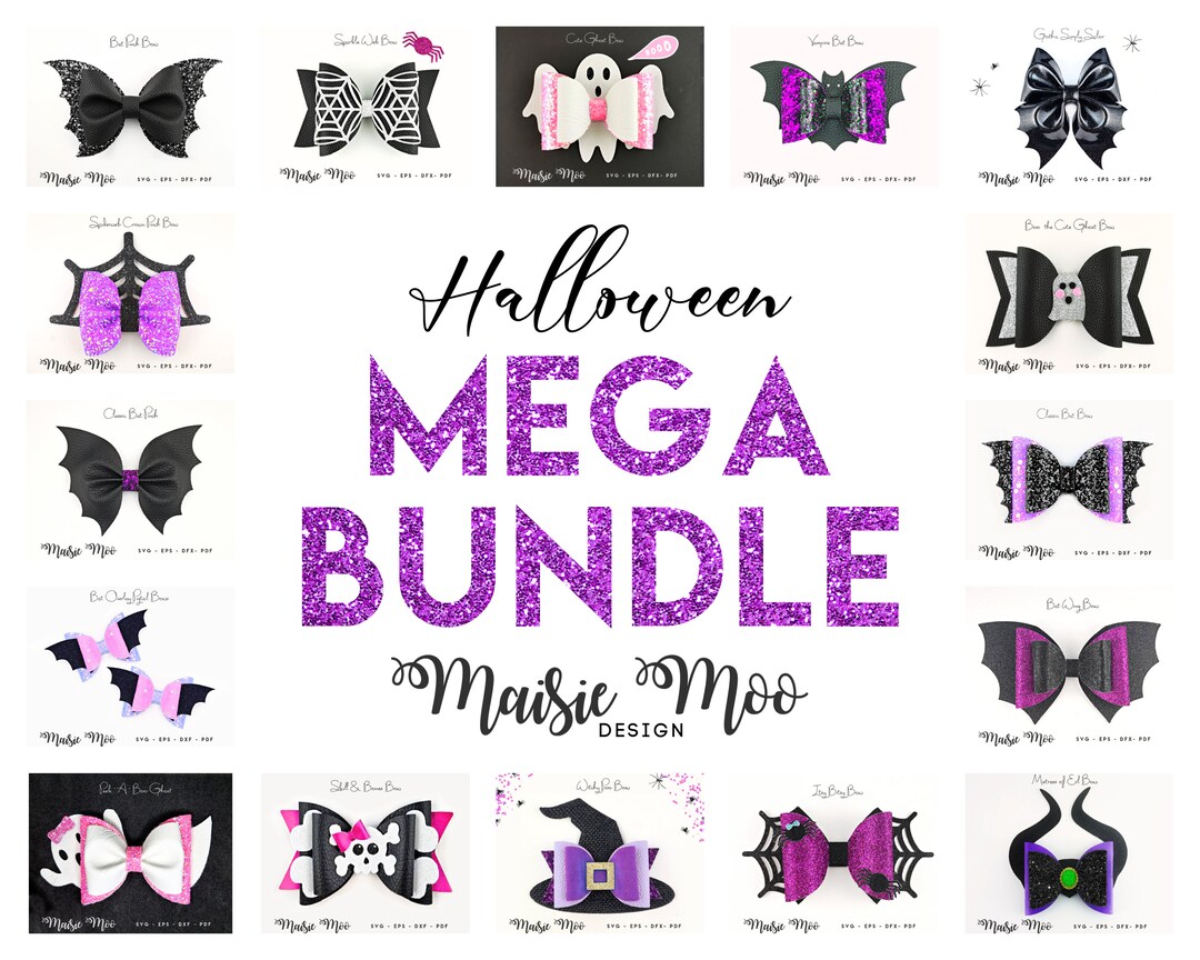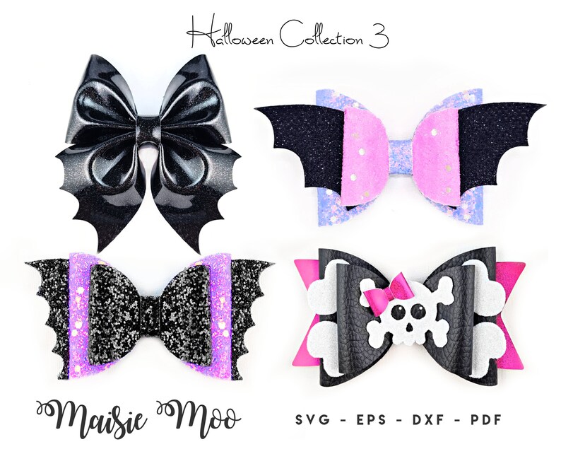 Halloween Bow Bundle Bow Template SVG Bundle Witch Bat Skull Etsy