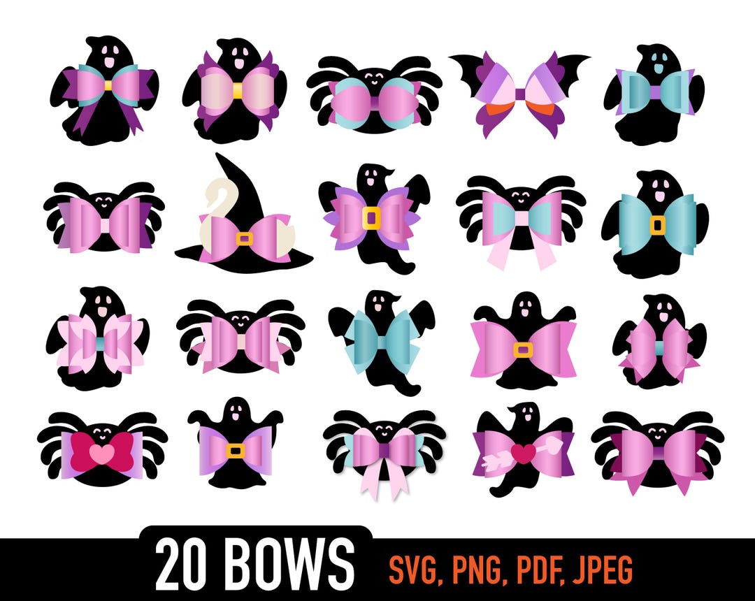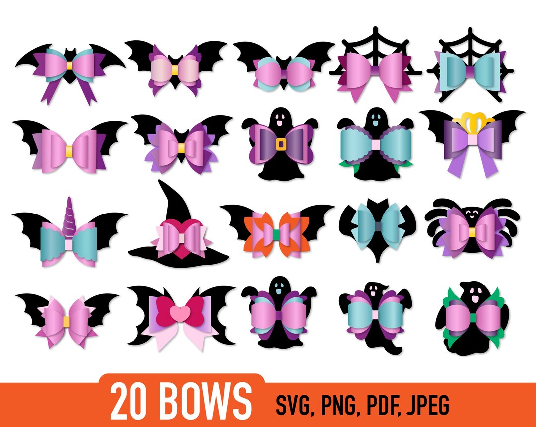 Halloween Bow Bundle Bat Bow Template SVG Bundle Black Bow Etsy