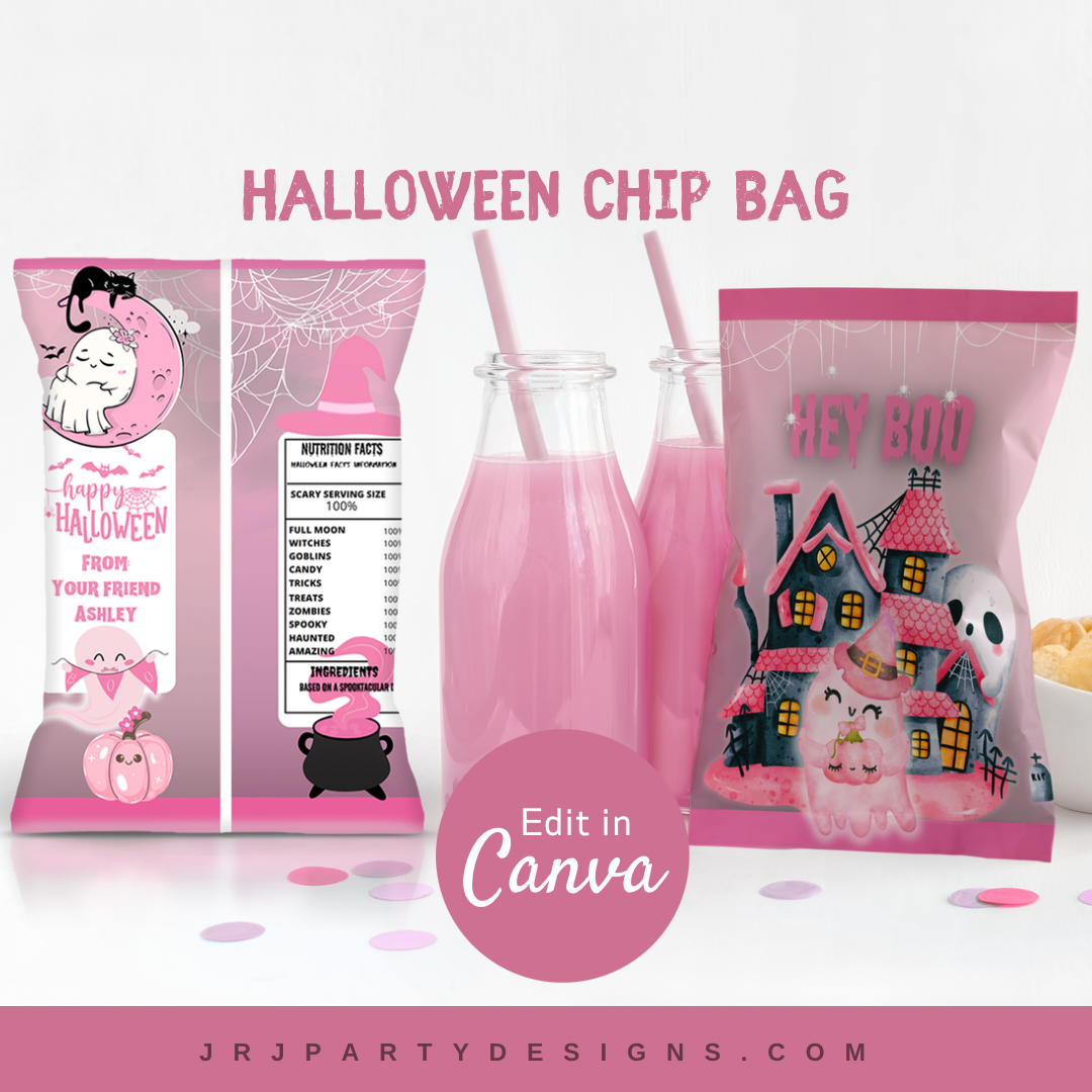Halloween Printable Chip Bag Template Pink Halloween Party Etsy