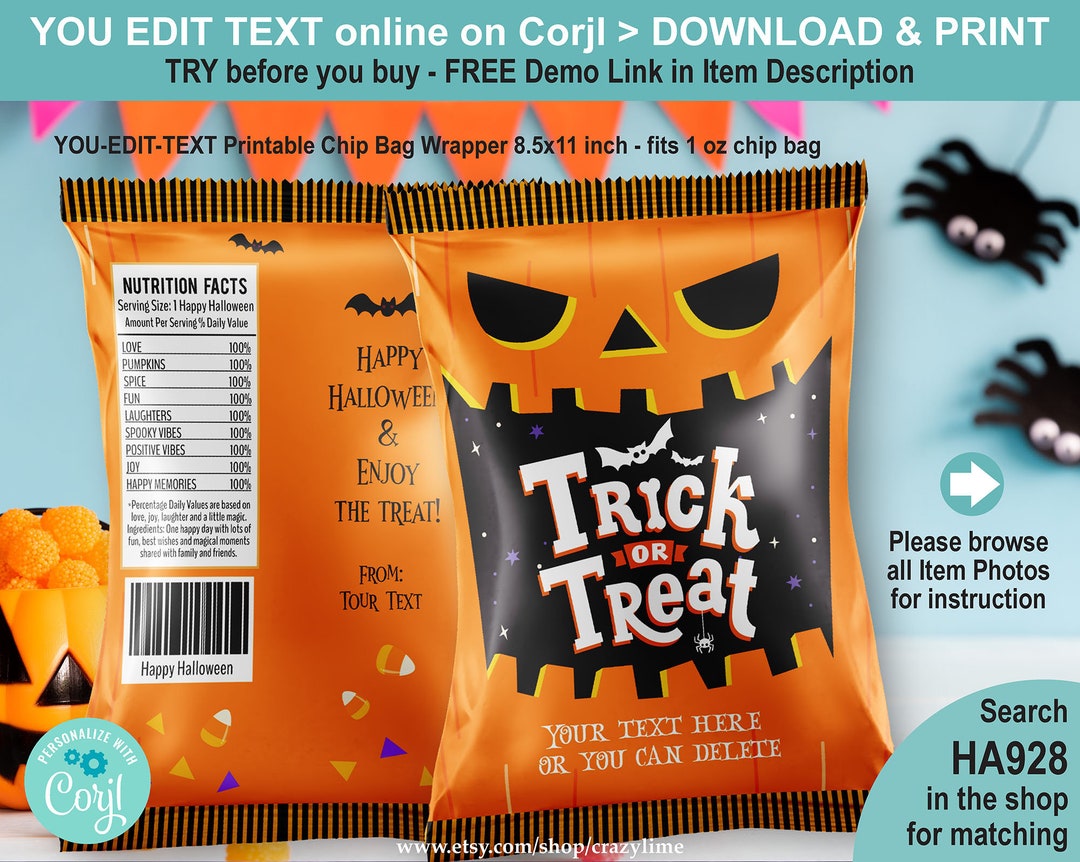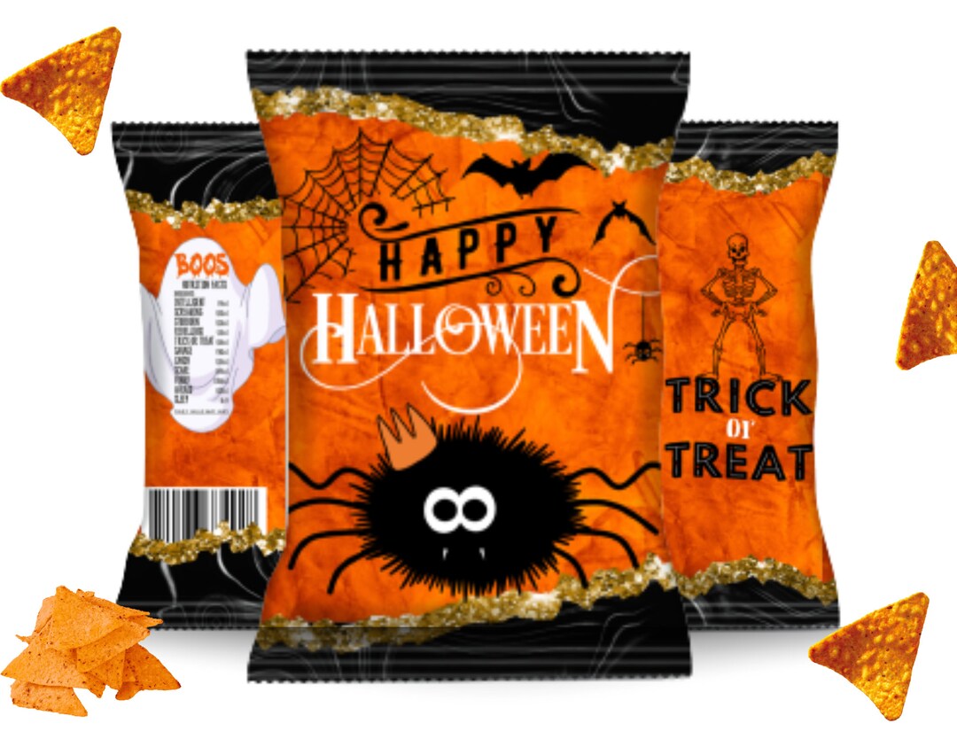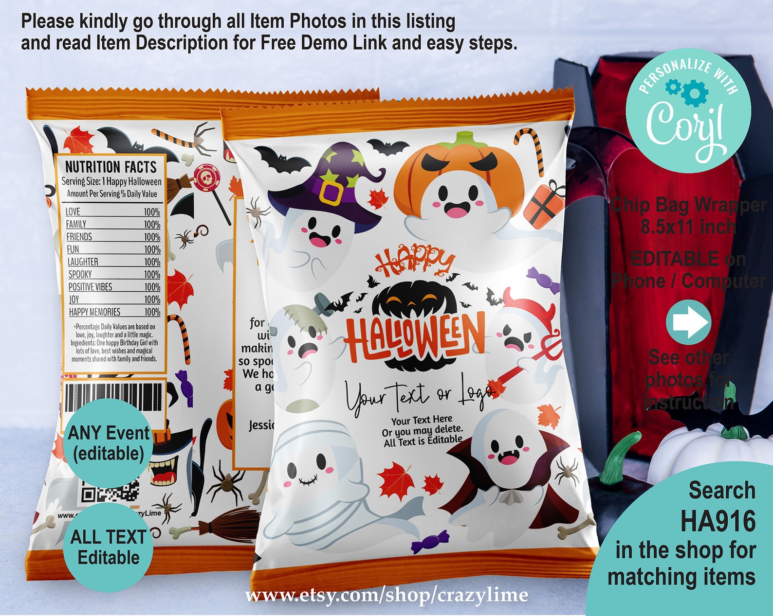 EDITABLE Halloween Chip Bag Template Personalised Name Text Trick or