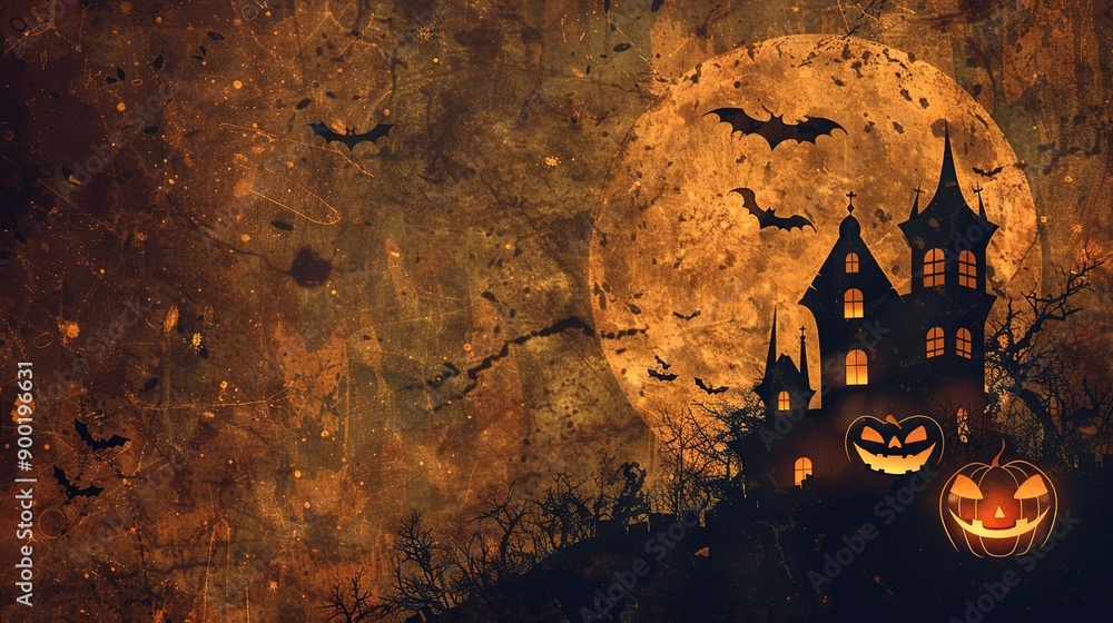 Spooky Halloween Invitation: Vintage Paper Background with Haunted