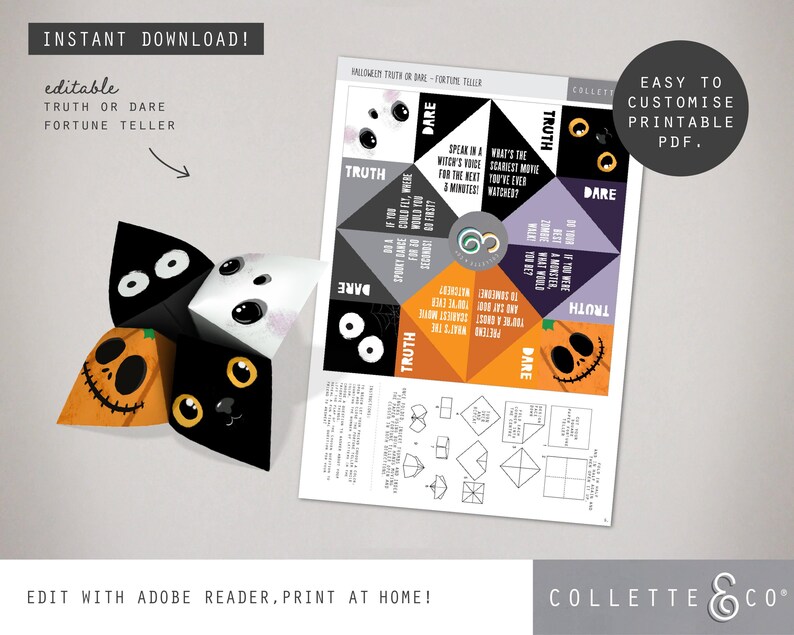 Halloween Fortune Teller Printable Editable Truth or Dare Cootie