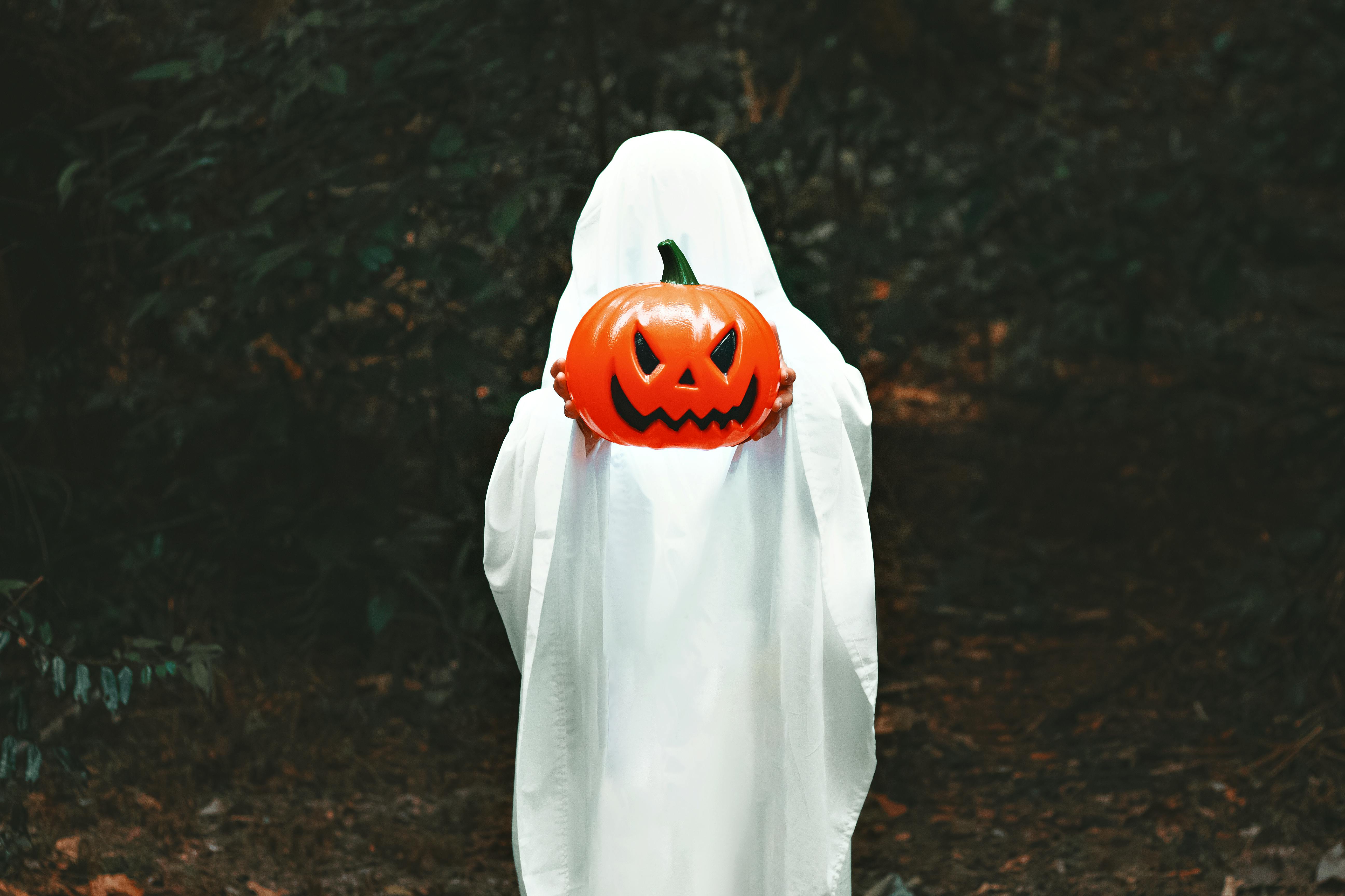 Spooky Ghost and Pumpkin for Halloween stock photo Creative Fabrica