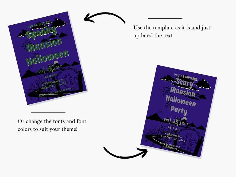 Spooky Mansion Halloween Party Templates Canva Editable and Eerie