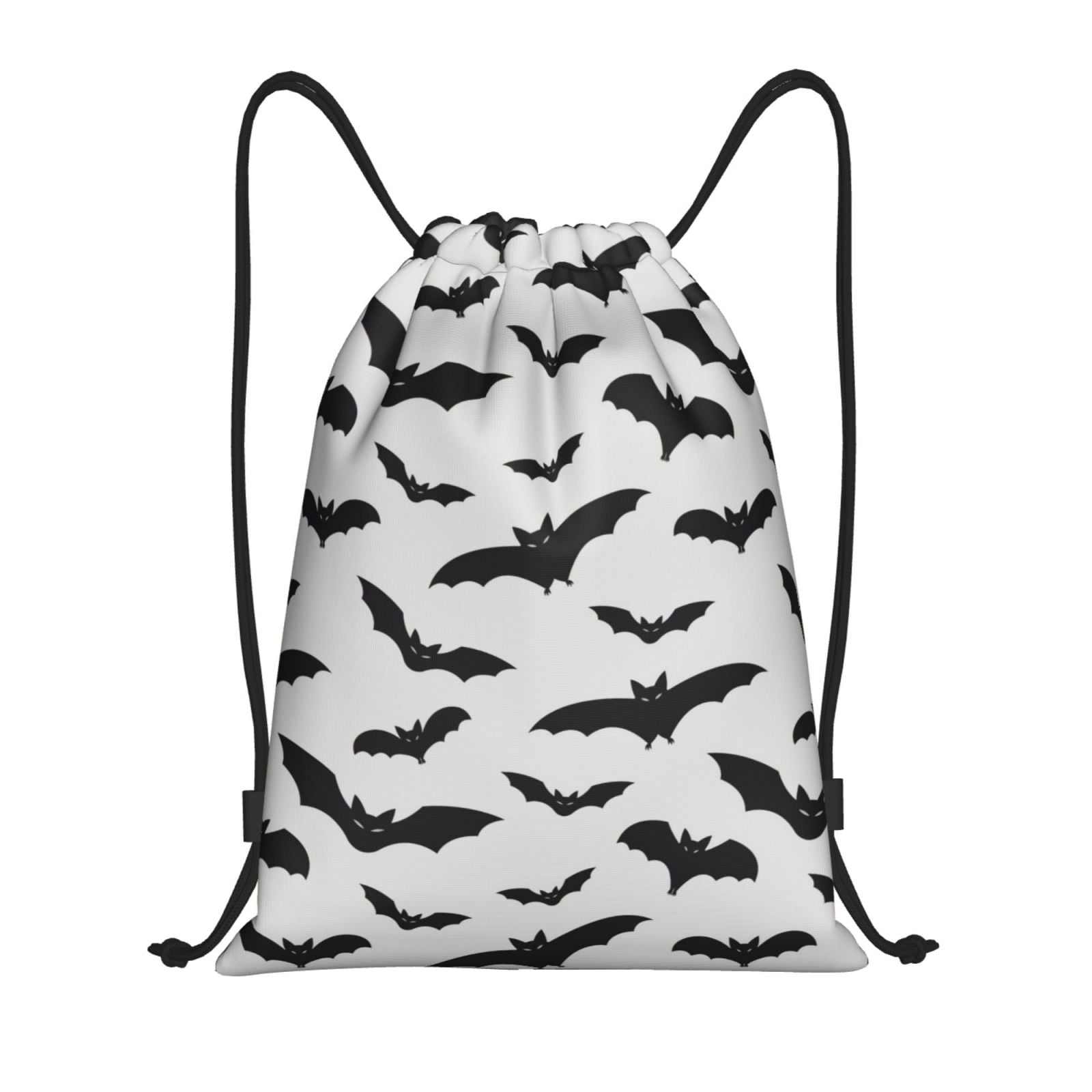 Drawstring Backpack Halloween bats grey cool print Splash Proof Small