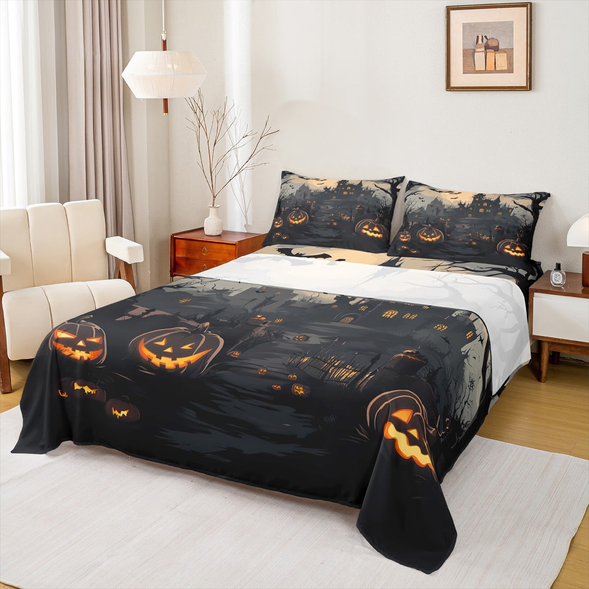 Feelyou Spooky Castle Full Size Sheets for Teen Gothic Pumpkin Bat