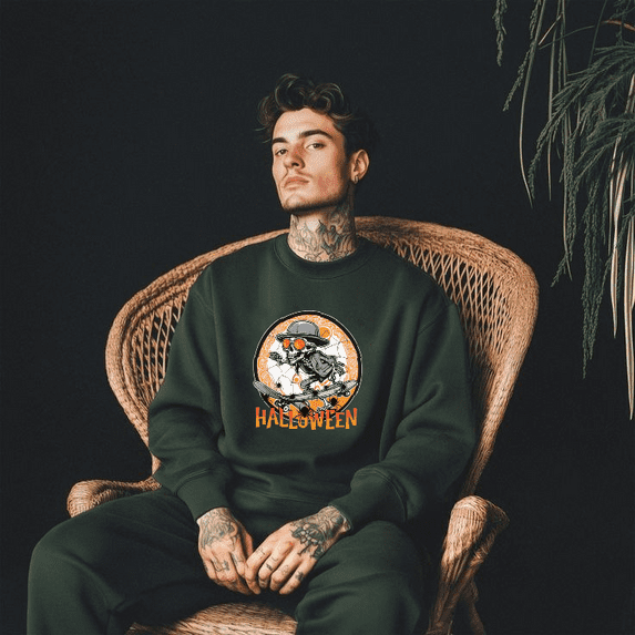 Halloween Party Skeleton Witch Hat and Bats a Stylish Graphic Print