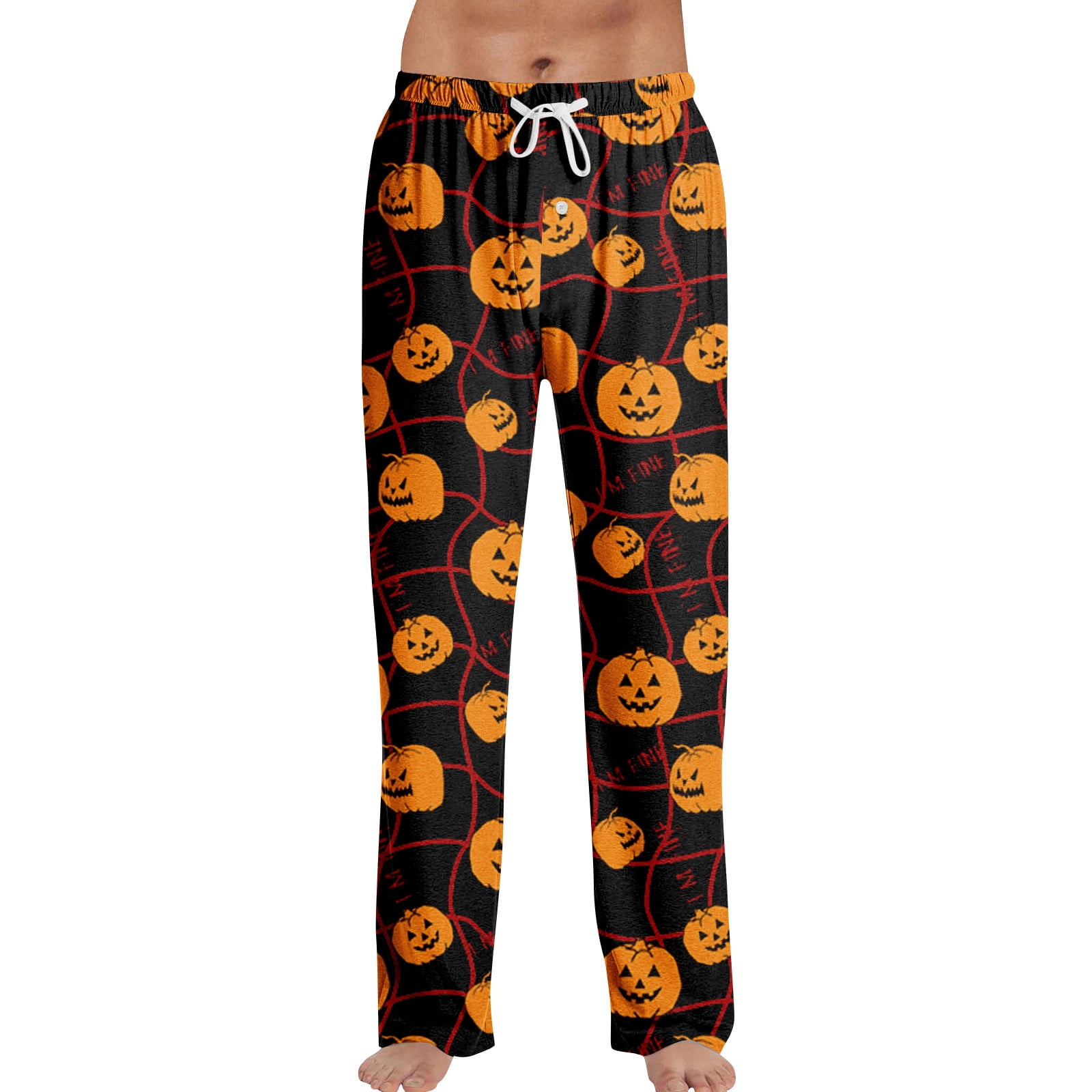 MLQIDK Men #39 s Pajama Pants Halloween Pjs Halloween Loose fit Pumpkin Bat
