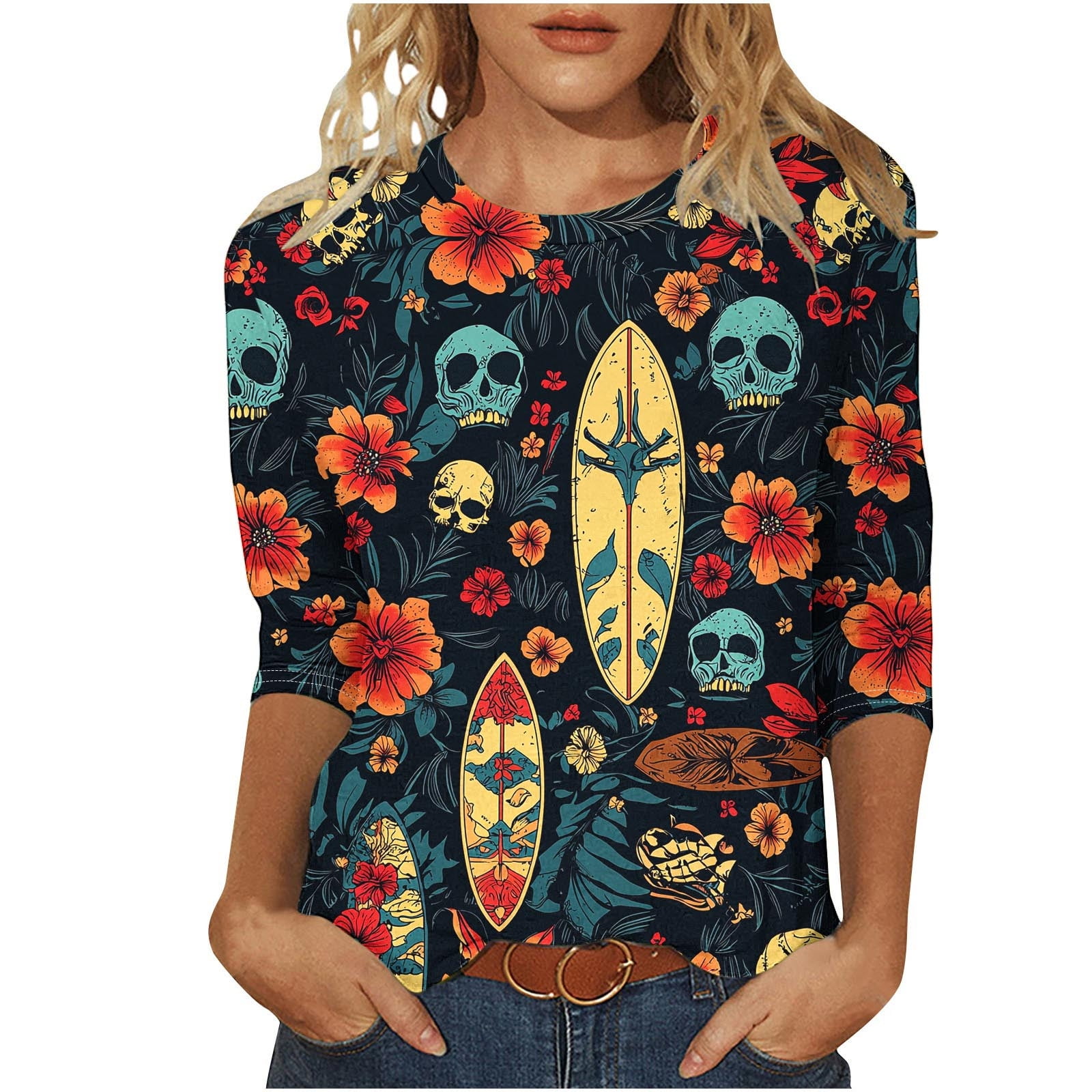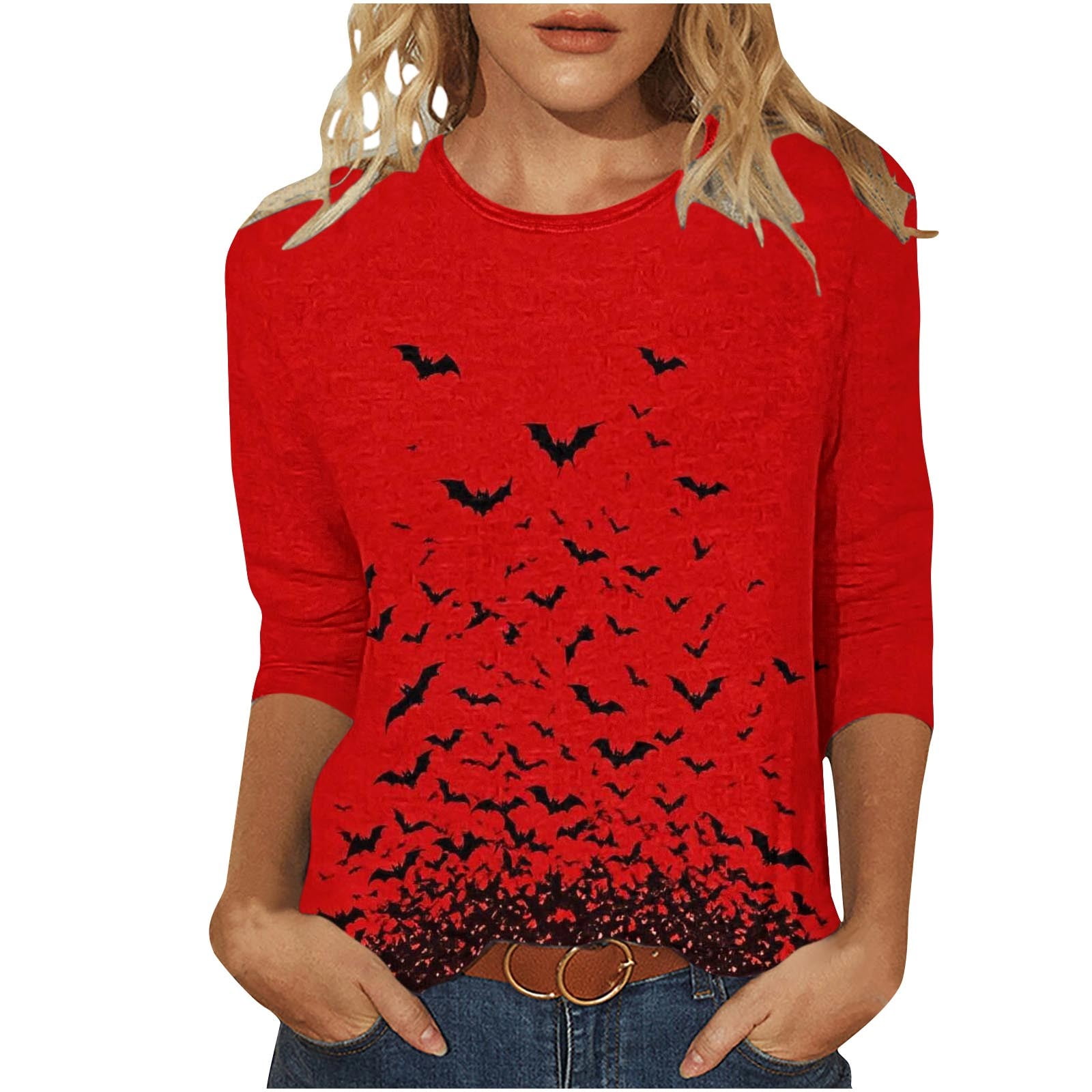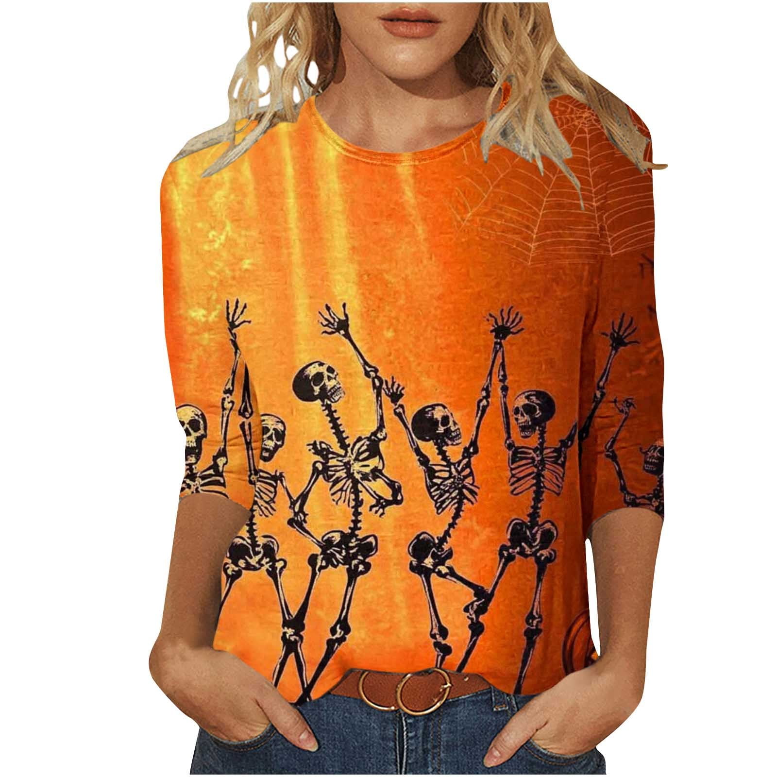 aohooy Womens Plus Size Halloween Shirts 3/4 Length Sleeve Womens Tops