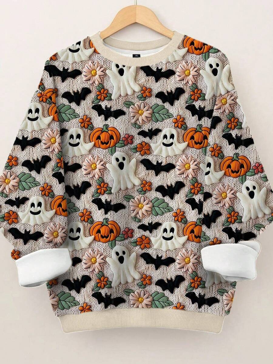 EMERY ROSE Plus Size Halloween Ghost Pumpkin Bat Print Raglan Long