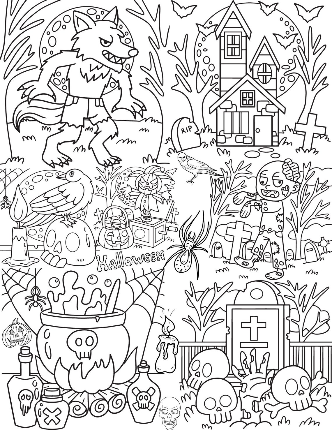 Printable Halloween Coloring Page for Kids or Adults Instant Digital