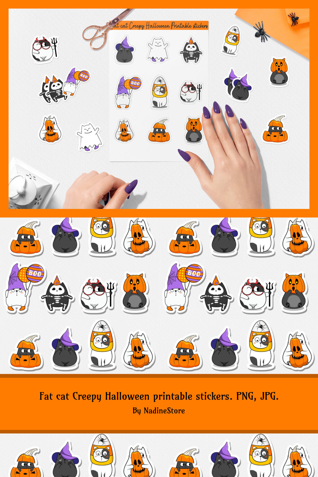 Fat Cat Creepy Halloween Printable Stickers PNG JPG MasterBundles