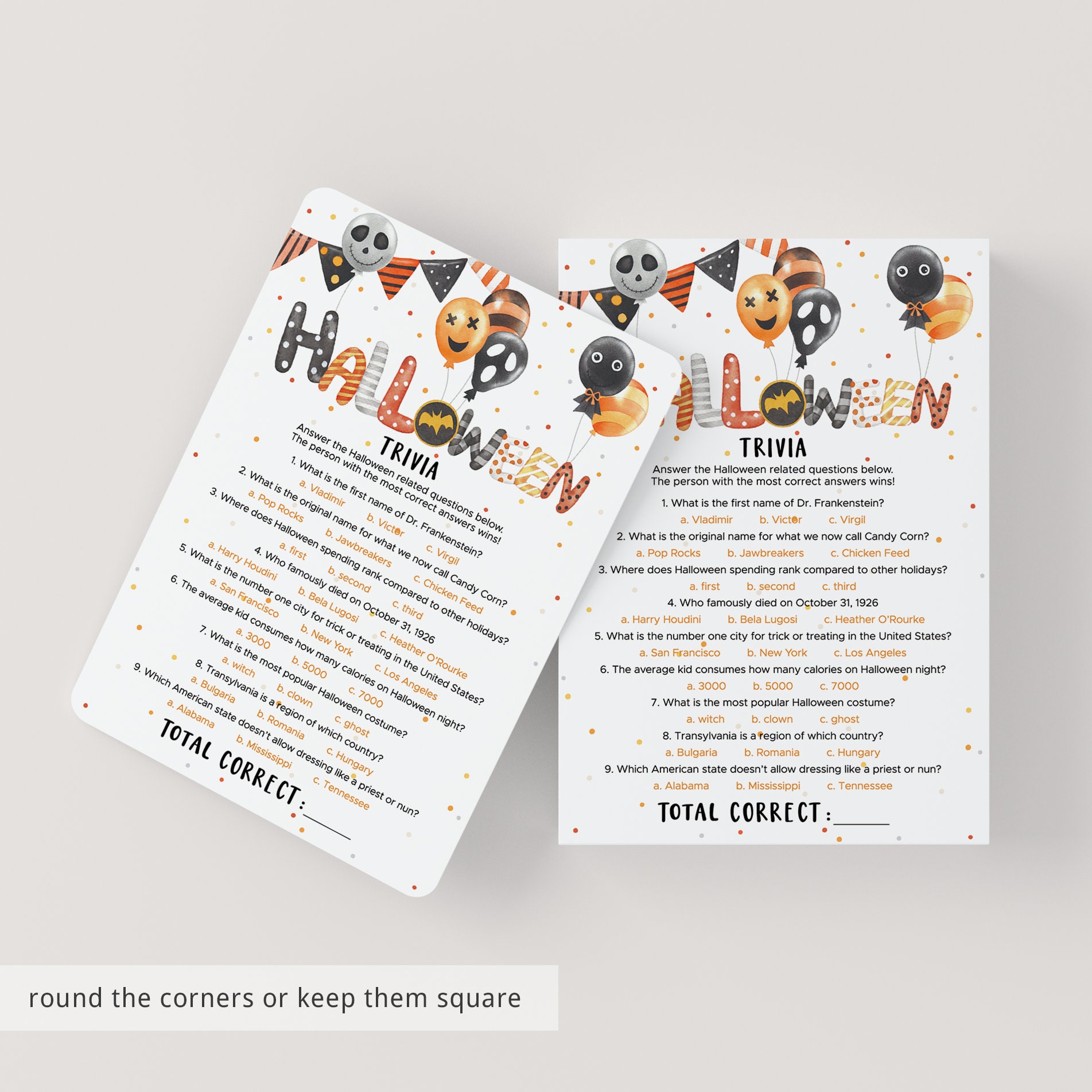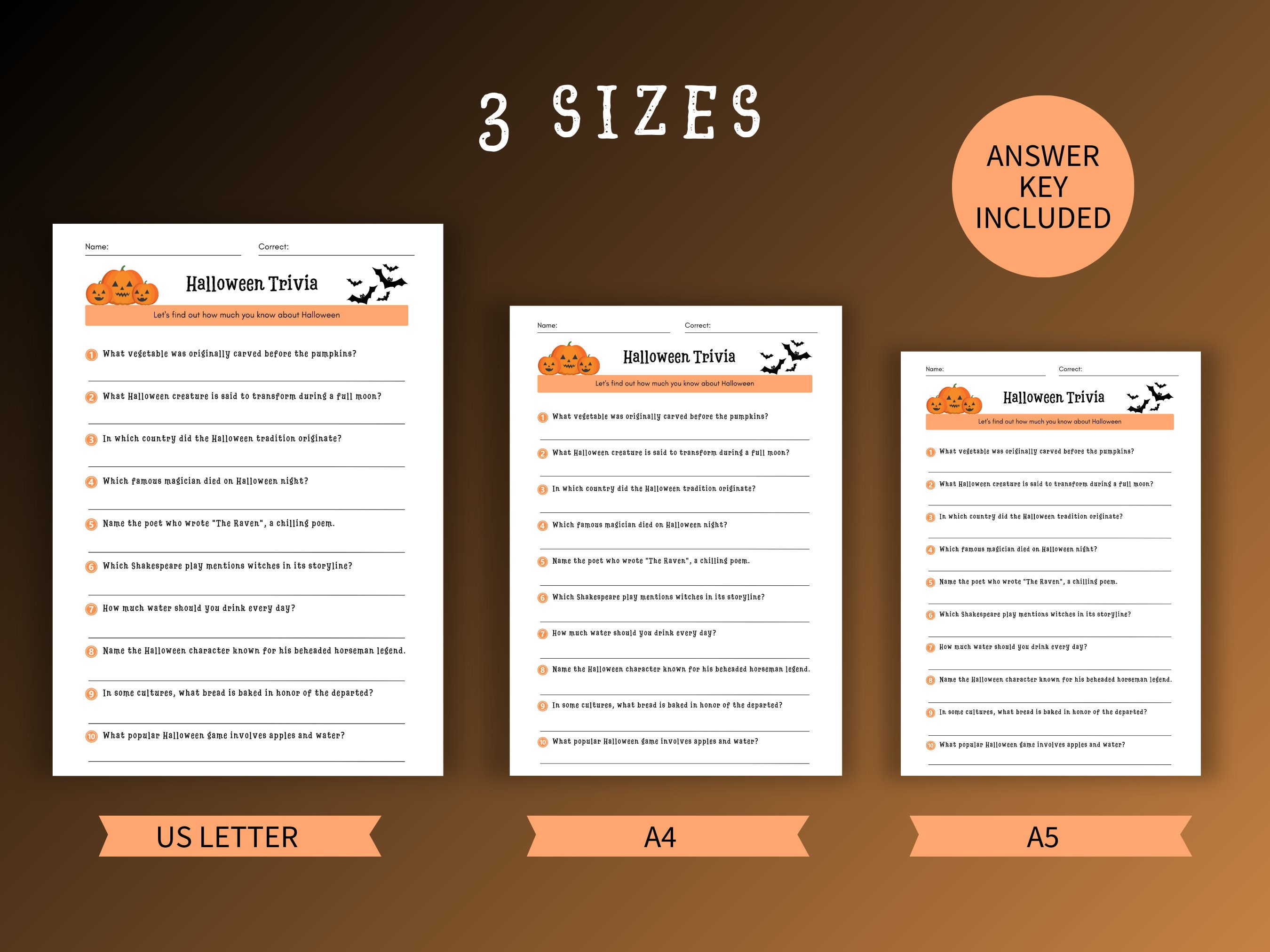 Halloween Trivia: Printable Halloween Quiz 10 Open ended Questions