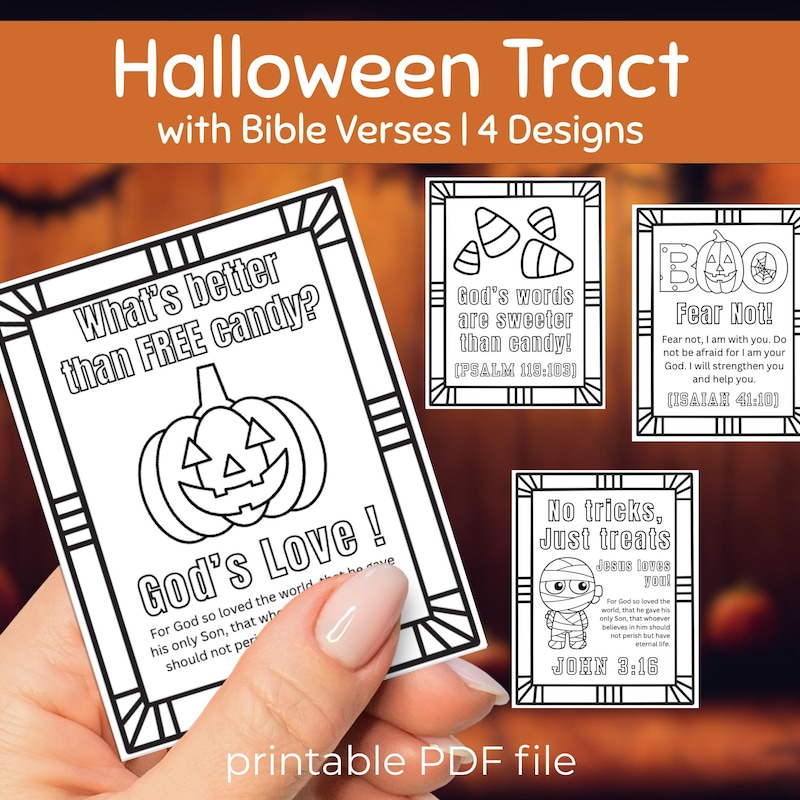 Christian Halloween Cards Tracts to Pass Out Treats Bible Verse Jesus