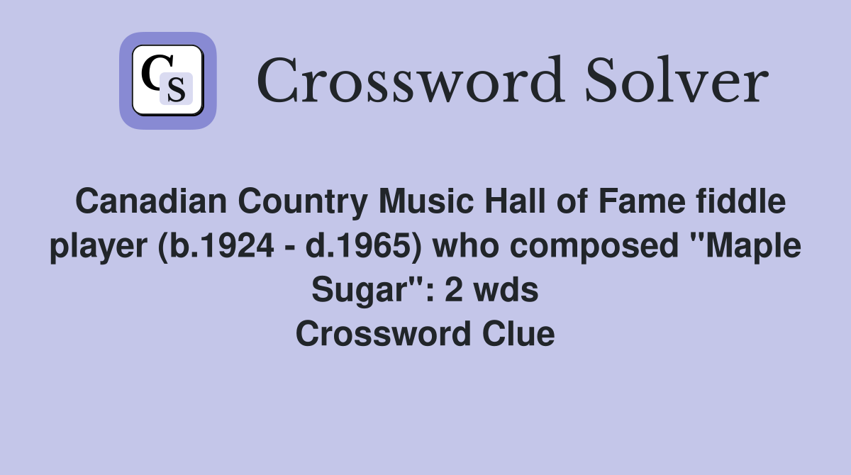 Canadian Country Music Hall of Fame fiddle player (b 1924 d 1965) who