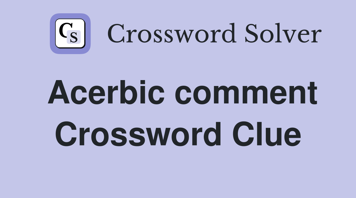 Acerbic comment Crossword Clue Answers Crossword Solver