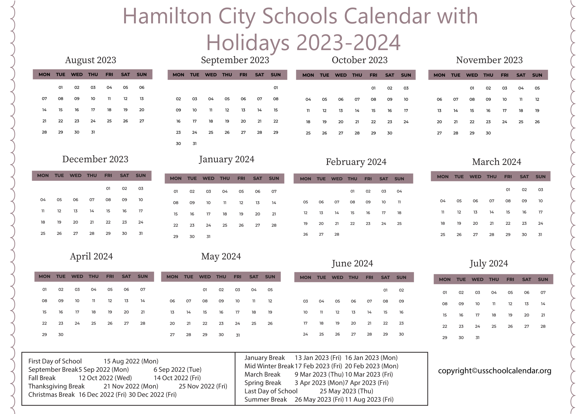 Hamilton City Schools Calendar 2023 2024 US School Calendar