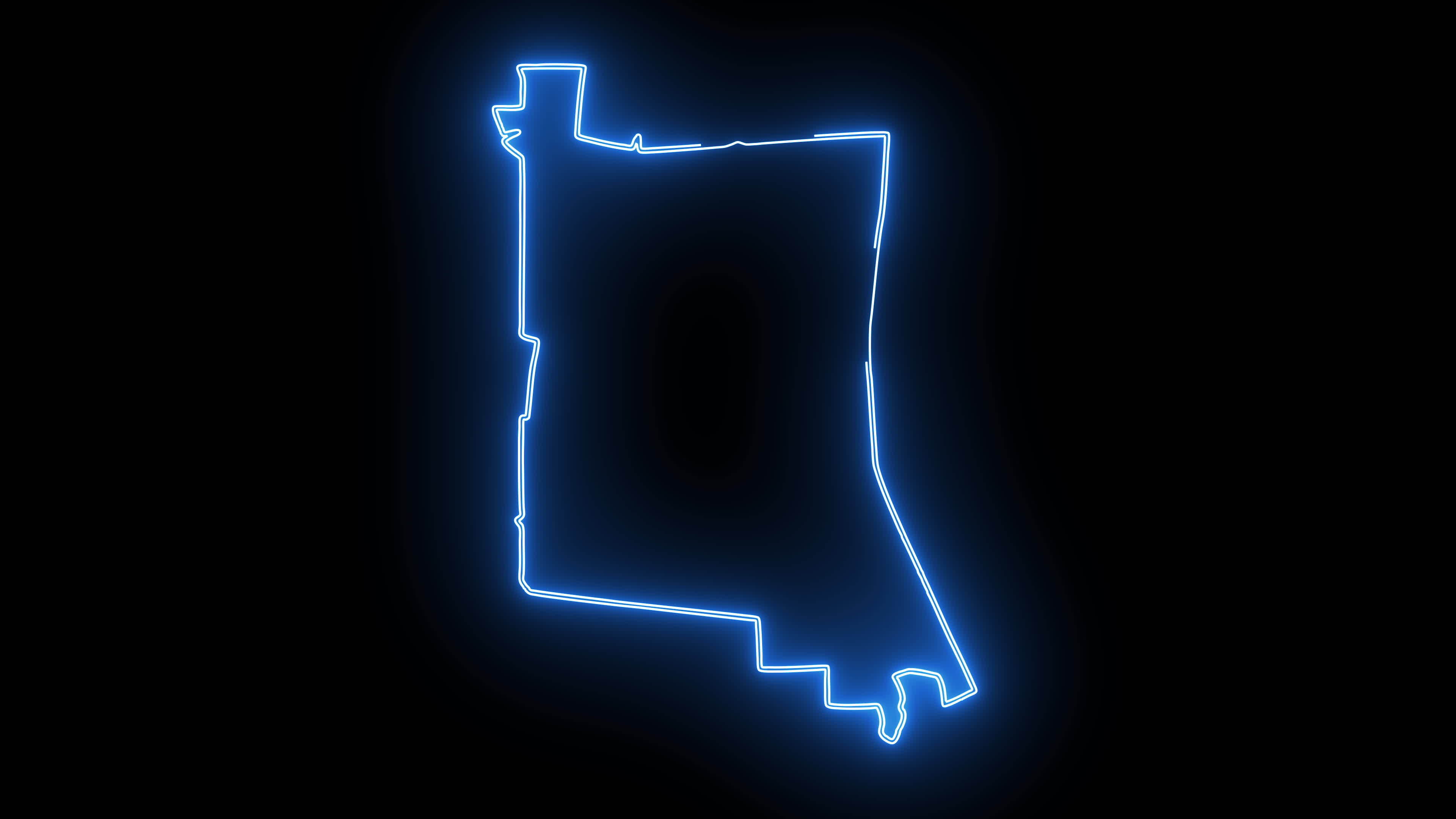mapa do umm Salal Muhammed dentro Catar com uma néon efeito este luzes