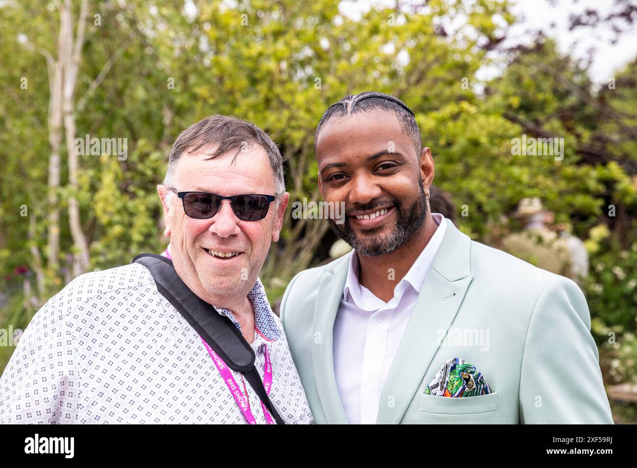 East Molesey UK 1st July 2024 Singer JB Gill poses with Photographer