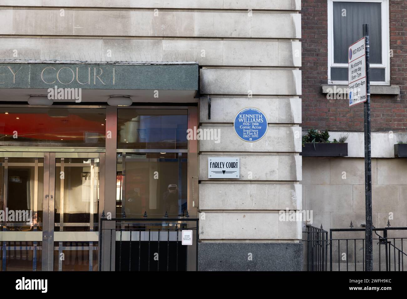 Plaque on the flats where Kenneth Williams actor and comedian lived at