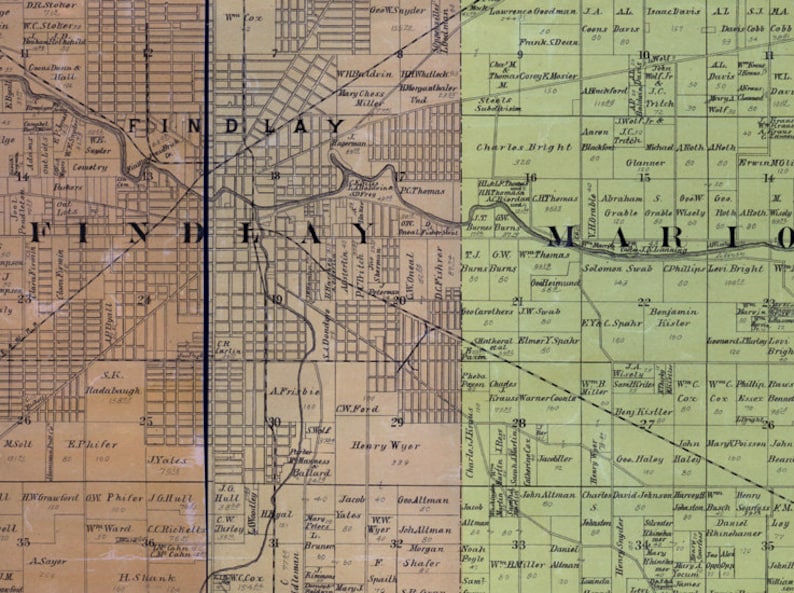 1890 Farm Line Map of Hancock County Ohio Findlay Etsy