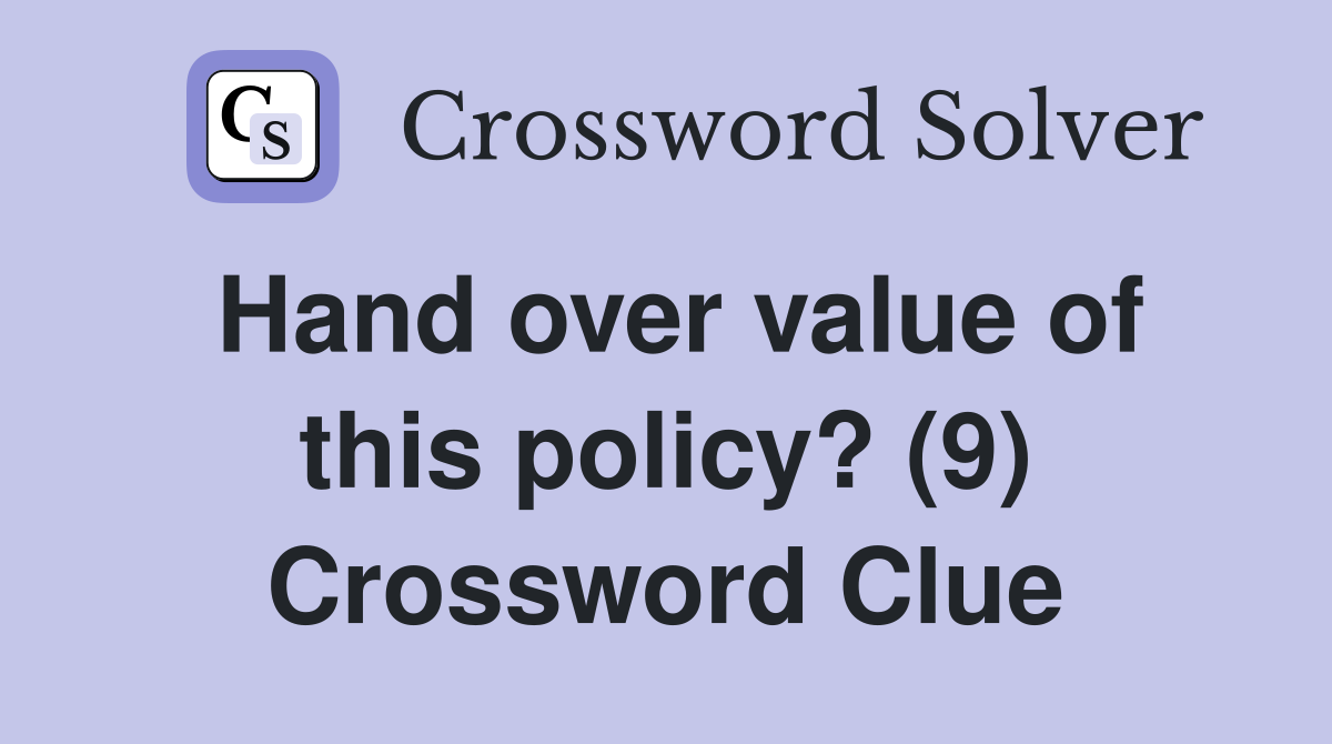 Hand over value of this policy? (9) Crossword Clue Answers
