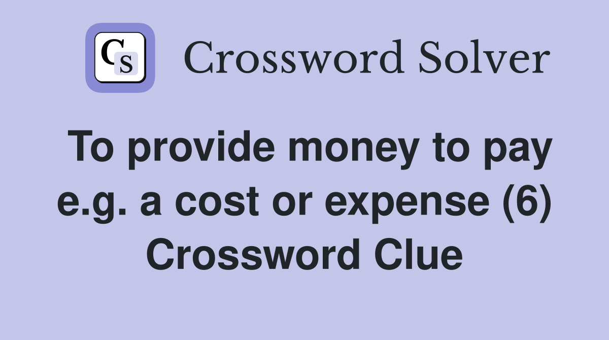 To provide money to pay e g a cost or expense (6) Crossword Clue