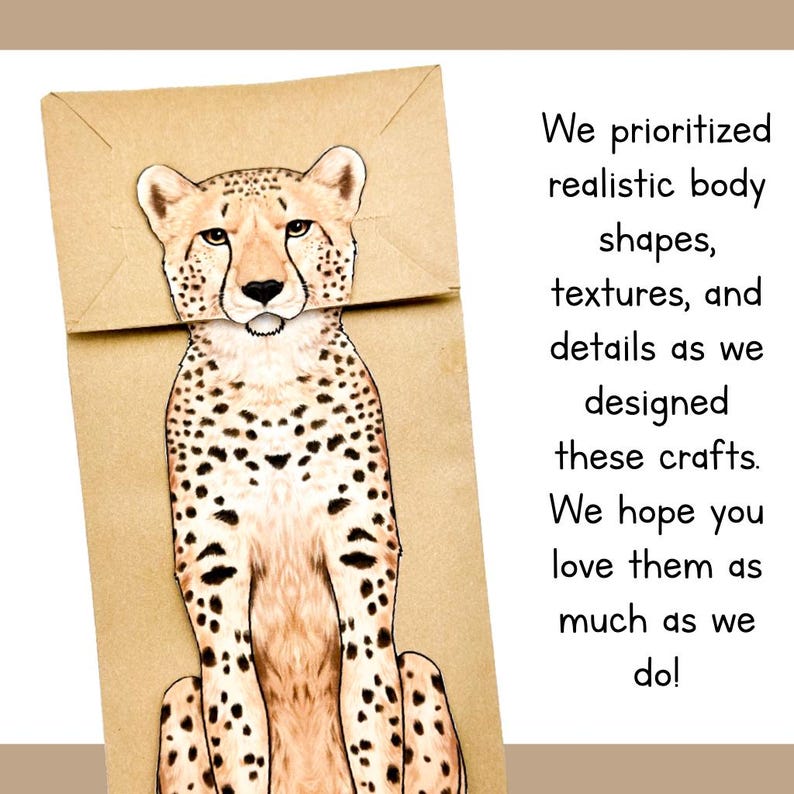Printable Cheetah Paper Bag Puppet Craft Template DIY Jungle Animal