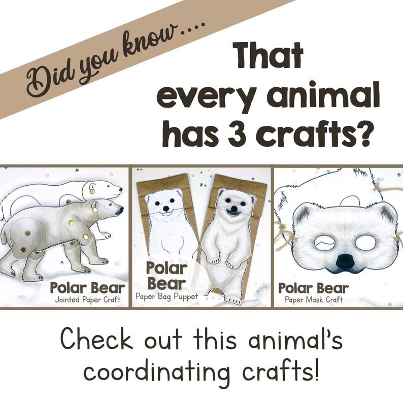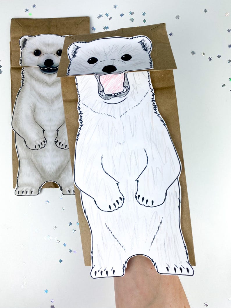 Printable Polar Bear Paper Bag Puppet Craft Kit DIY ARCTIC Animal