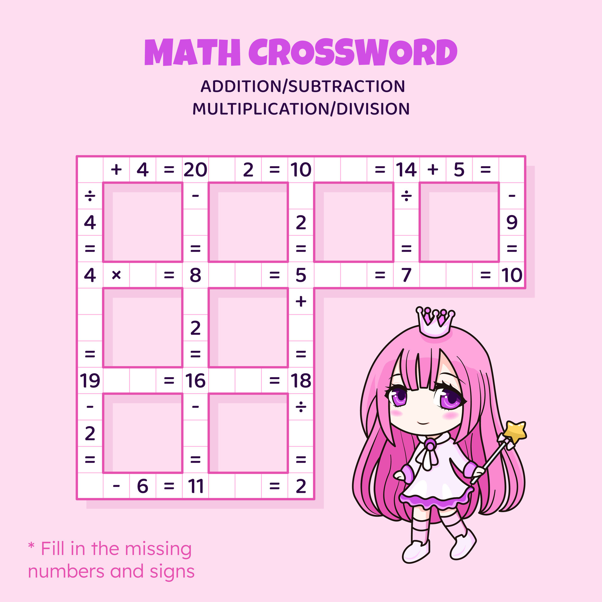 Math Crossword puzzle for kids Addition subtraction multiplication