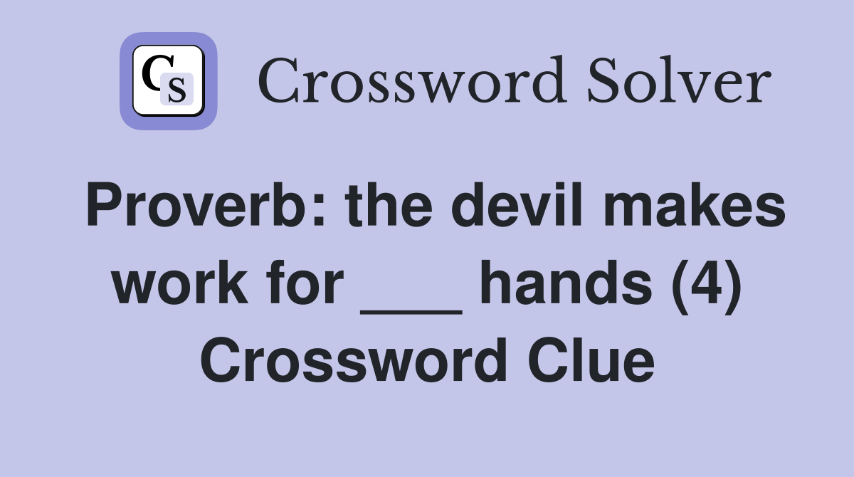 Proverb: the devil makes work for hands (4) Crossword Clue