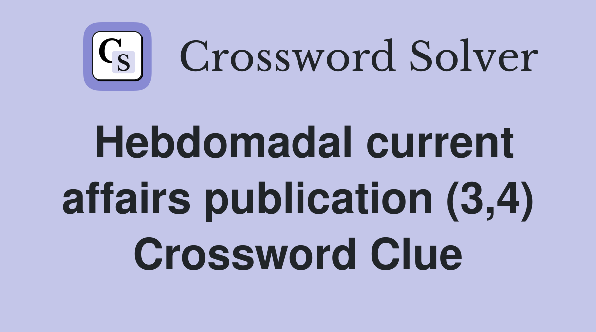 Hebdomadal current affairs publication (3 4) Crossword Clue Answers