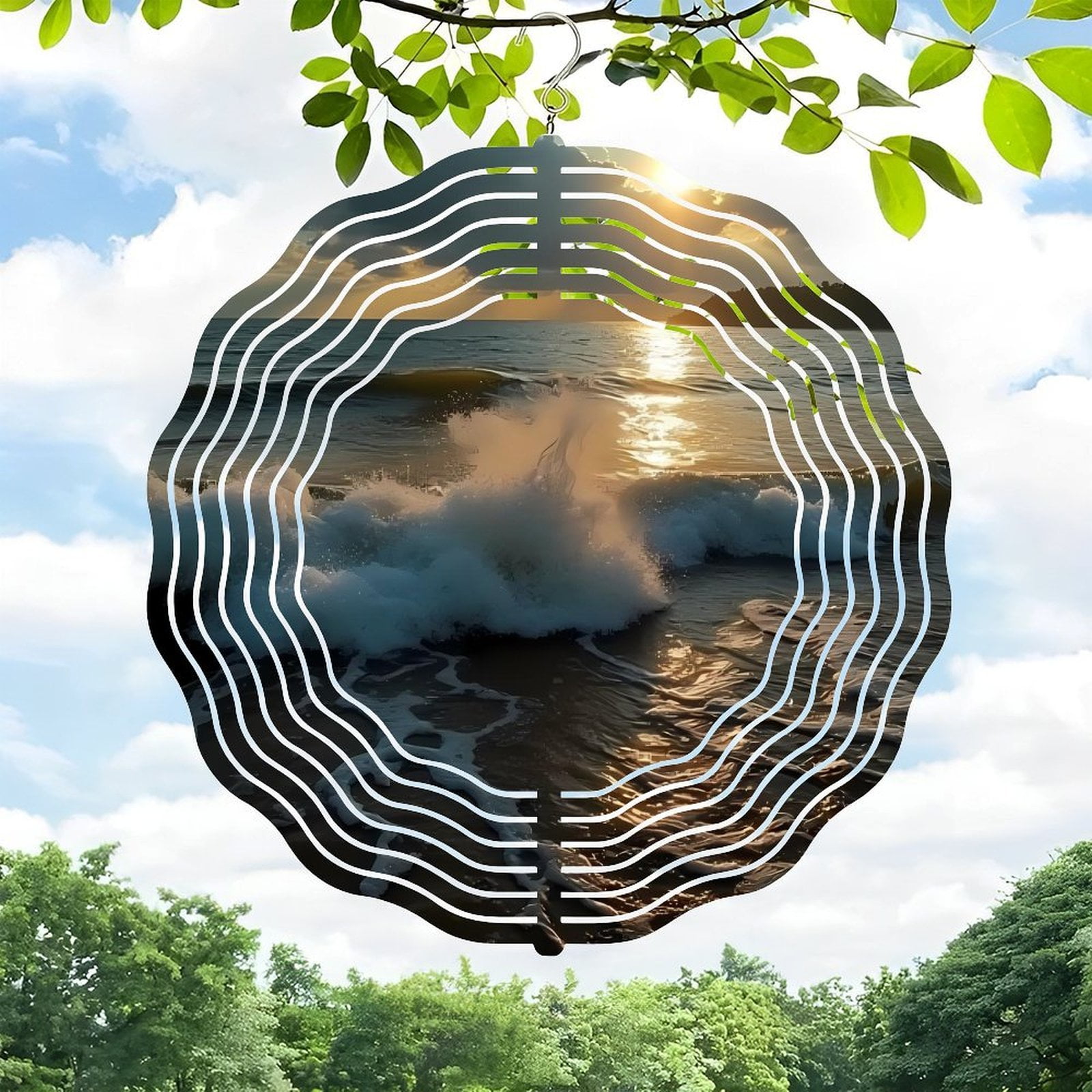 3D Metal Hanging Wind Spinners Concentric Wave Design Wind Chimes for