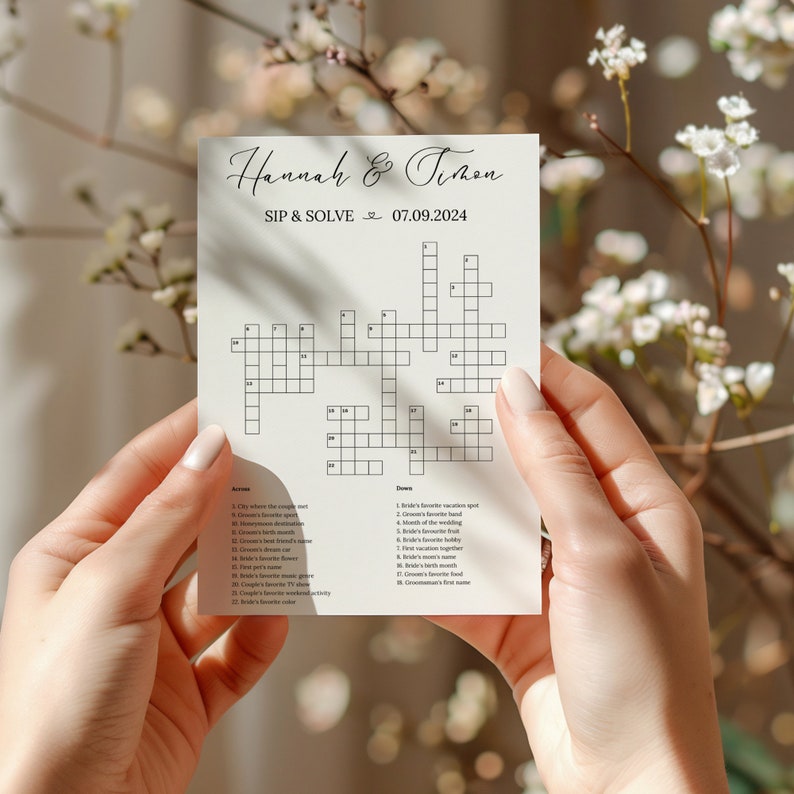 Custom Wedding Crossword Puzzle: Sip and Solve Guest Game (digital