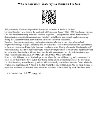 Early Life Lorraine Hansberry