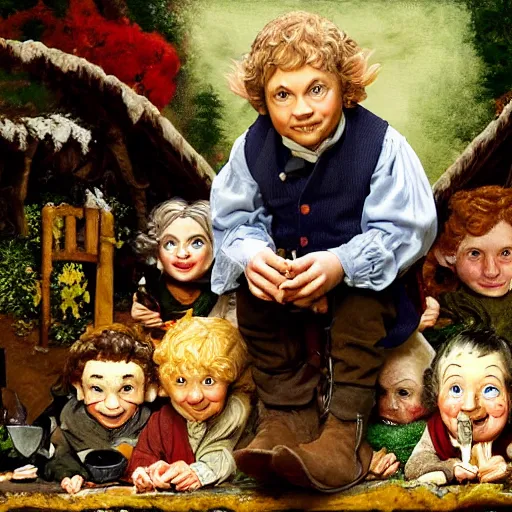bilbo baggins goes to the elf club realistic oil Stable Diffusion