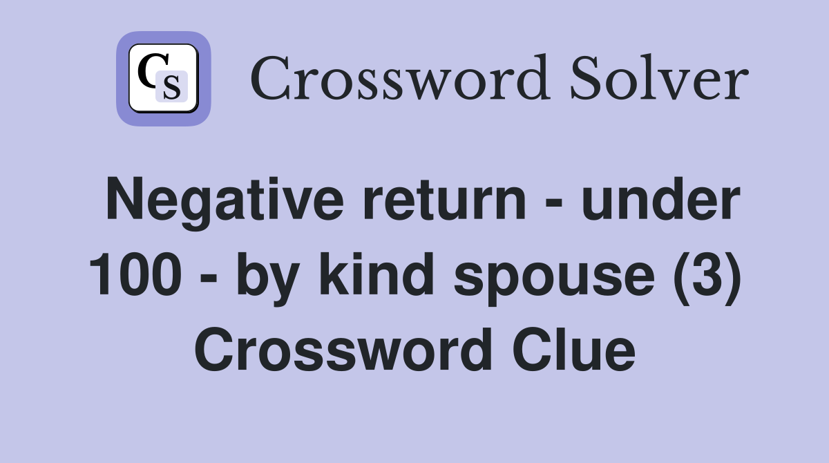 Negative return under 100 by kind spouse (3) Crossword Clue