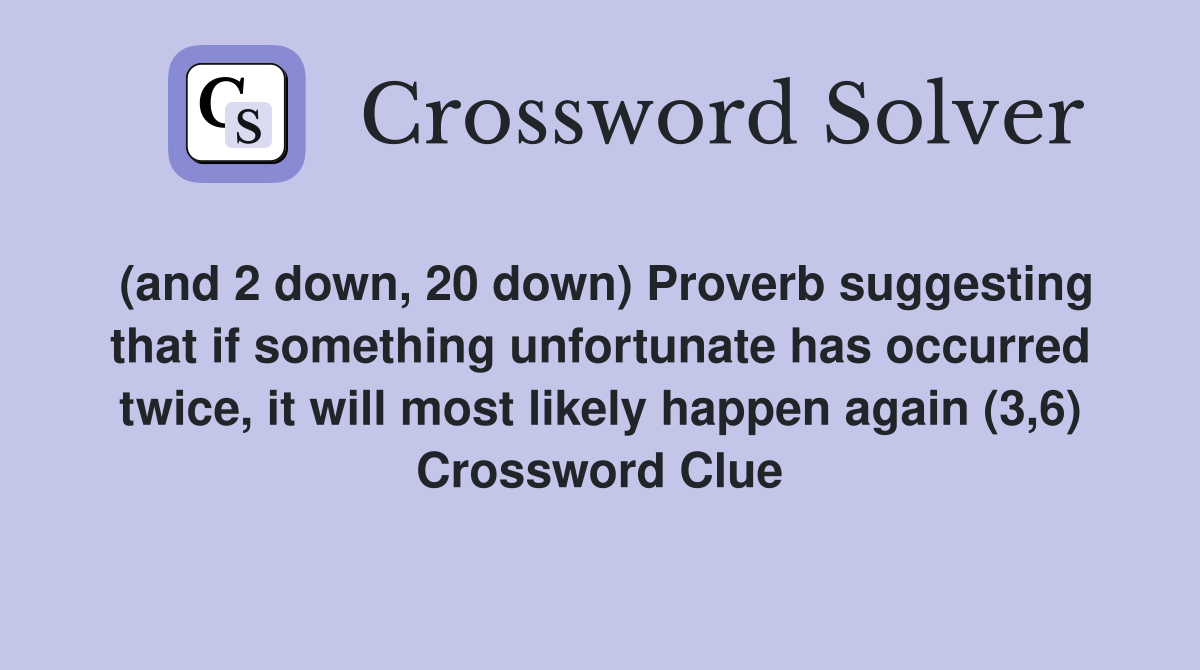 (and 2 down 20 down) Proverb suggesting that if something unfortunate