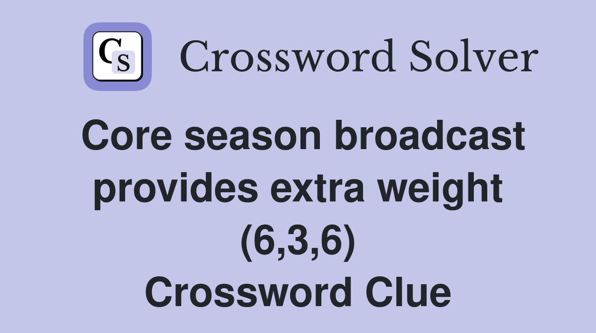 Core season broadcast provides extra weight (6 3 6) Crossword Clue