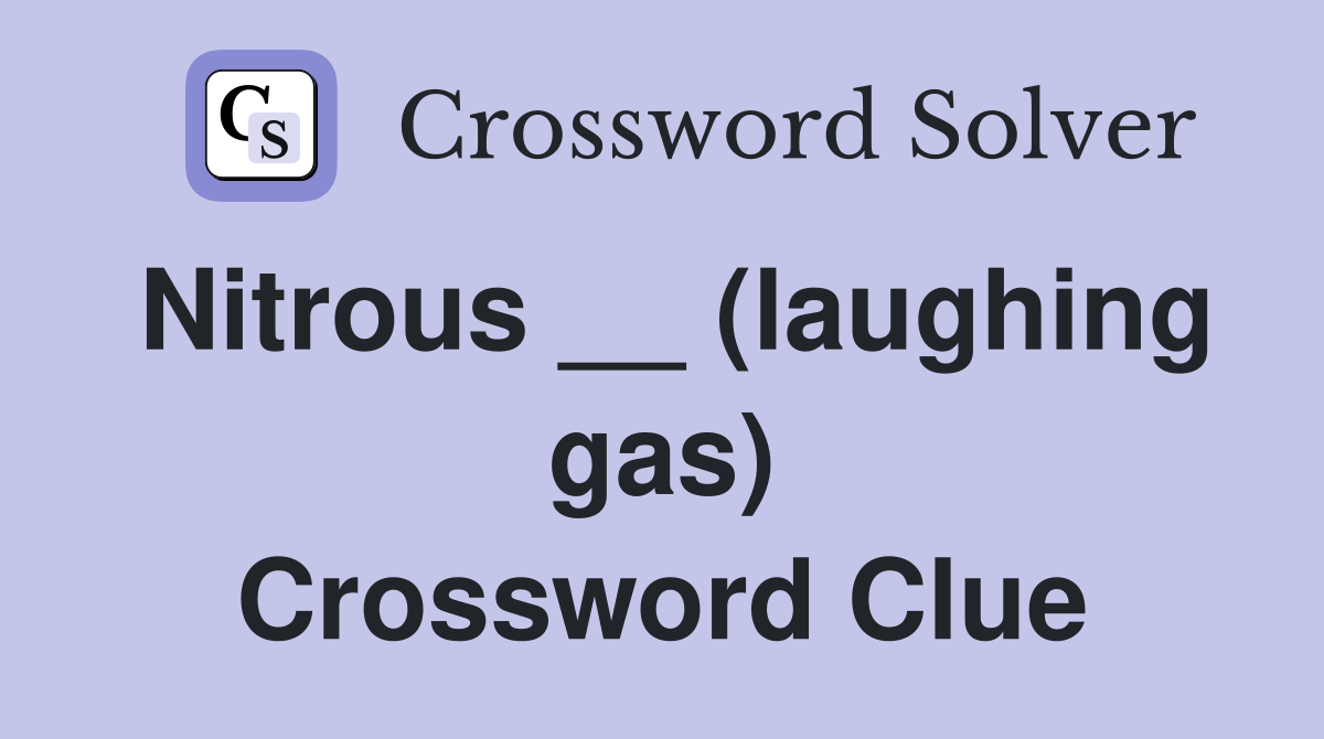 Nitrous (laughing gas) Crossword Clue Answers Crossword Solver