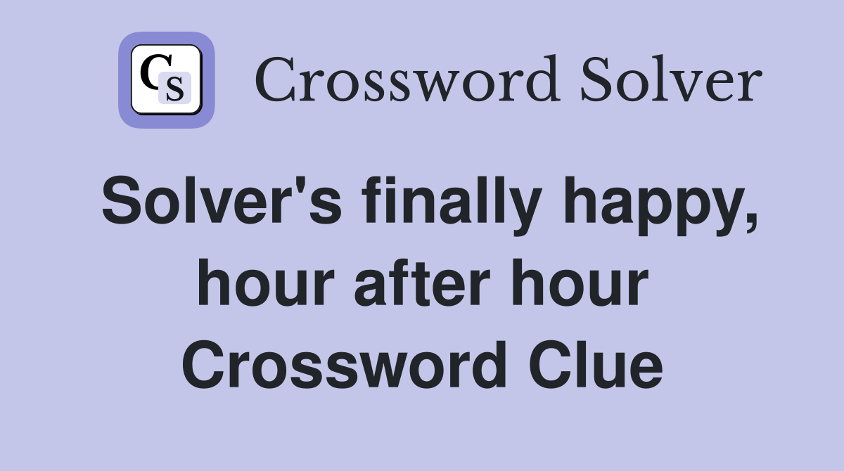 Solver #39 s finally happy hour after hour Crossword Clue Answers