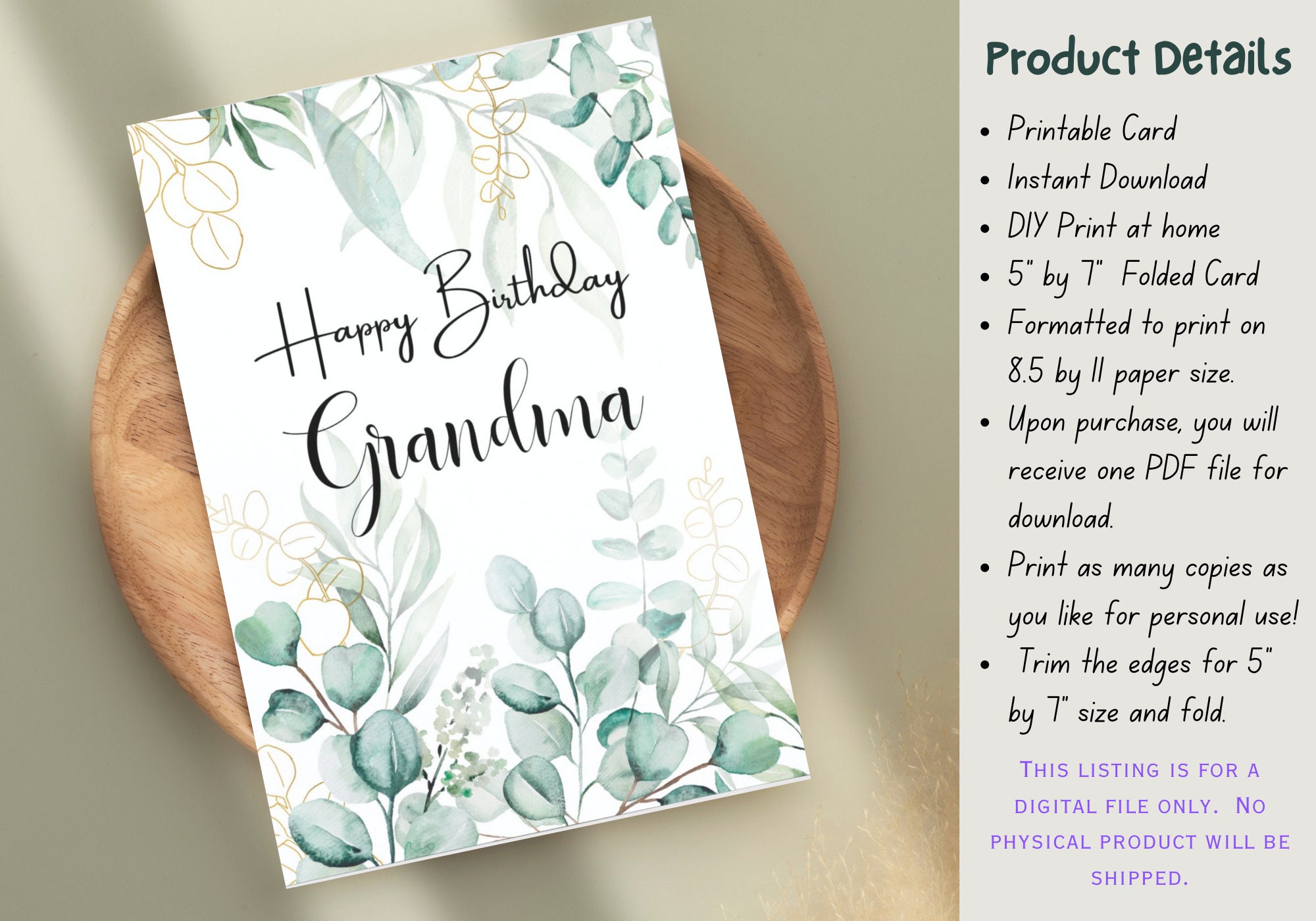 Printable Happy Birthday Grandma Card Instant Download Etsy