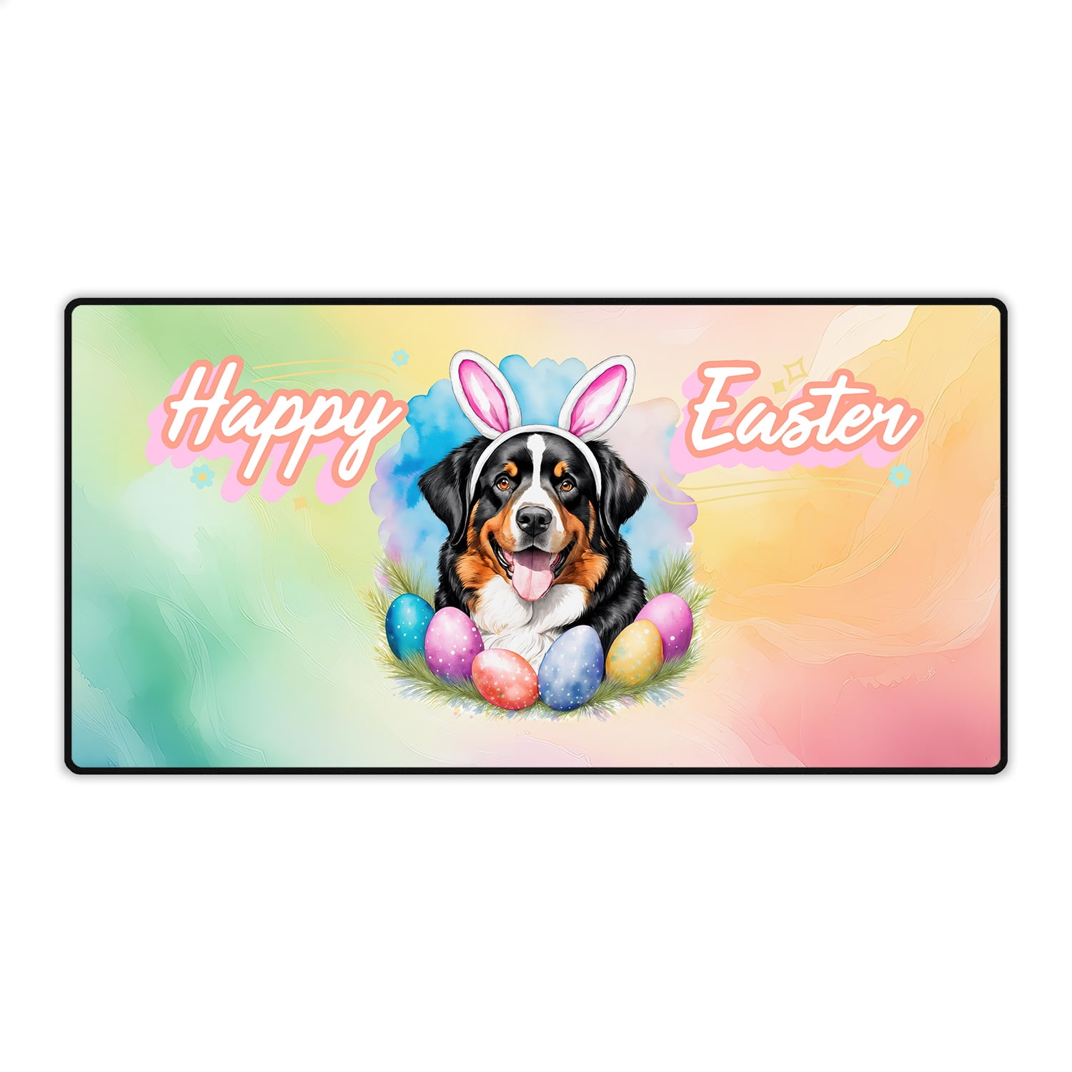 Happy Easter Bernese Mountain Dog with Bunny Ear Headband and Flowers