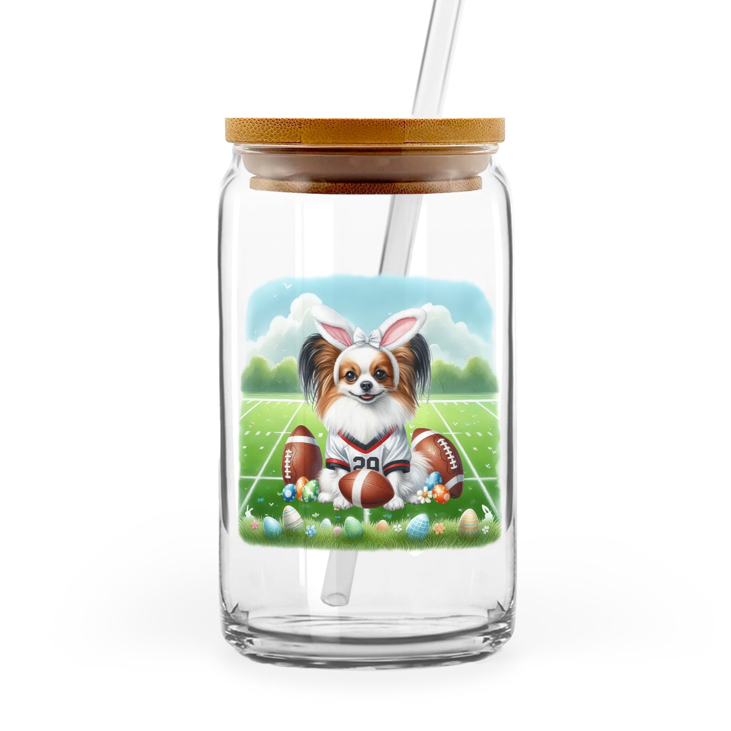 Happy Easter Hello Spring Papillon Playing Football 16oz Glass Cup Mug