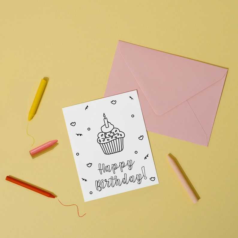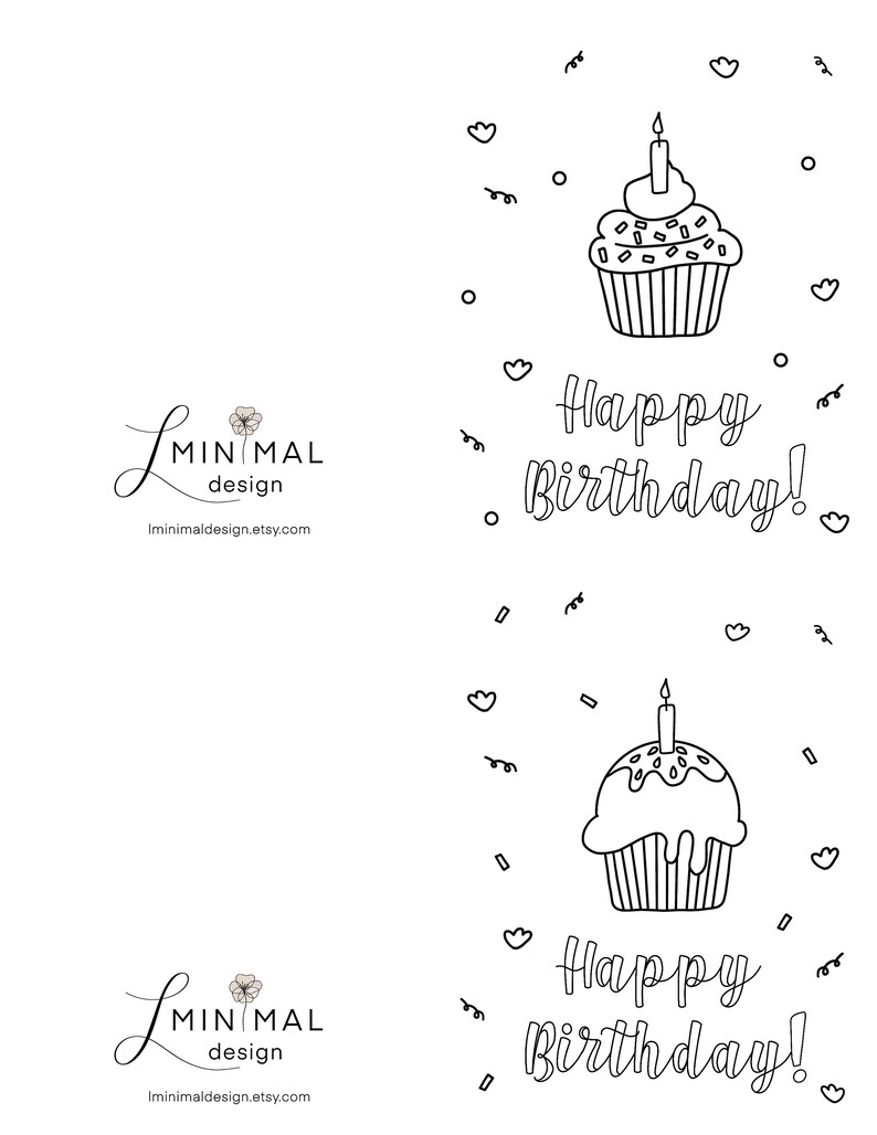 Happy Birthday Printable Coloring Card Cupcake Birthday Card for Kids